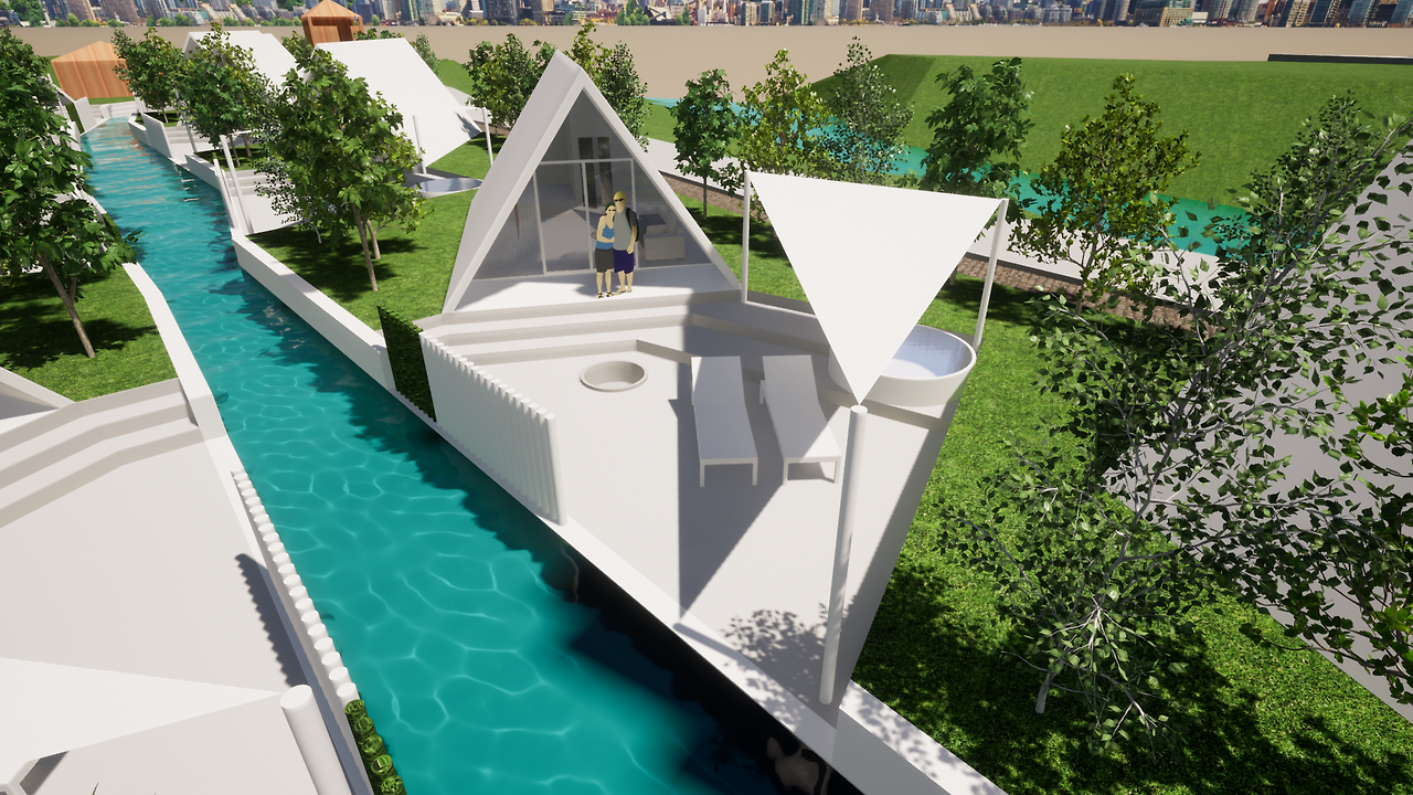 경기도 가평 약 1500평 부지에 글램핑장을 조성하는 것으로 3가지 디자인 후보 안에서 약 70m 길이의 인피니티 풀장을 가진 안이 최종 선정되었다.