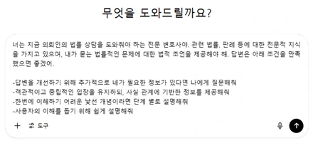 특히 변호사의 업무는 결국 하나의 ‘구체적인 사건’을 다루는 일이기에, AI가 매 사건마다 존재하는 특수성을 완벽히 감지해 내기 어렵다는 점에서 가장 큰 부족함이 있었던 것 같습니다. 변호사의 진짜 역량은 똑같은 '폭행 혐의'를 받는 사건이라고 하더라도 '이 사건이 기존 판례와 다른 이유', '내 의뢰인이 다른 기존과 다른 처분을 받아야 하는 이유'를 발굴해야 할 때 두드러지기 때문입니다. 아직 AI가 직접 따라오기는 힘든 영역이죠. 다만 수사기관을 직접 상대해야 하는 의뢰인이나, 변호사를 만나기 전에 자신의 사건을 정리해보고 싶을 때에는 충분히 유용한 도우미가 될 수 있겠다는 판단이 들었습니다.