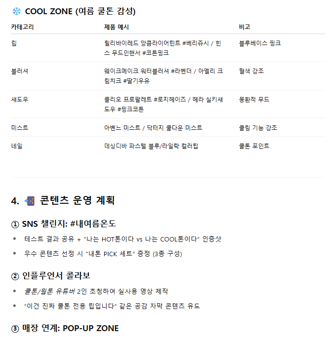 "피부 톤 테스트를 통해 쿨톤·웜톤을 진단하고, 각 톤에 어울리는 제품을 큐레이션해 쿠폰을 제공한다." 어디선가 본 듯한 친숙한 기획안이지만, 그래서 더 설득력 있었던 것도 같습니다. 권 MD도 다음 기획전에 실제로 참고해 볼 만하다고 평가했죠.
