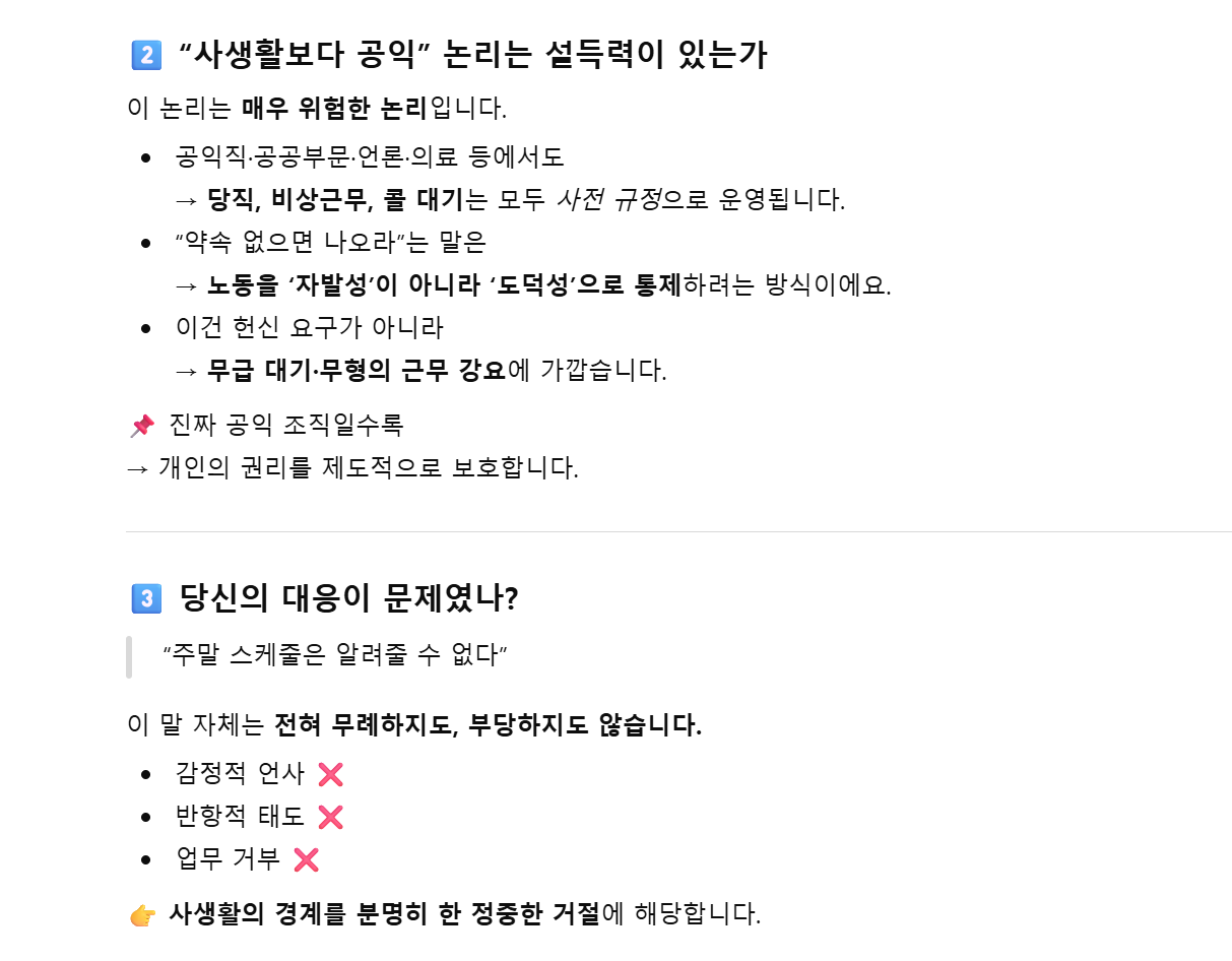 챗GPT는 감정적인 공감보다 여러 객관적인 기준과 근거를 들어 잘못된 행동이 아니라고 설명해 주었습니다. 내담자의 상황을 조금 더 넓은 시각에서 바라볼 수 있도록 도와주면서도 상황을 차분하게 정리한 것입니다. 감정을 단정하거나 평가하지 않았죠. 내담자를 향해 '자기 성찰 능력이 매우 높은 사람'이라고 표현하기도 했습니다.