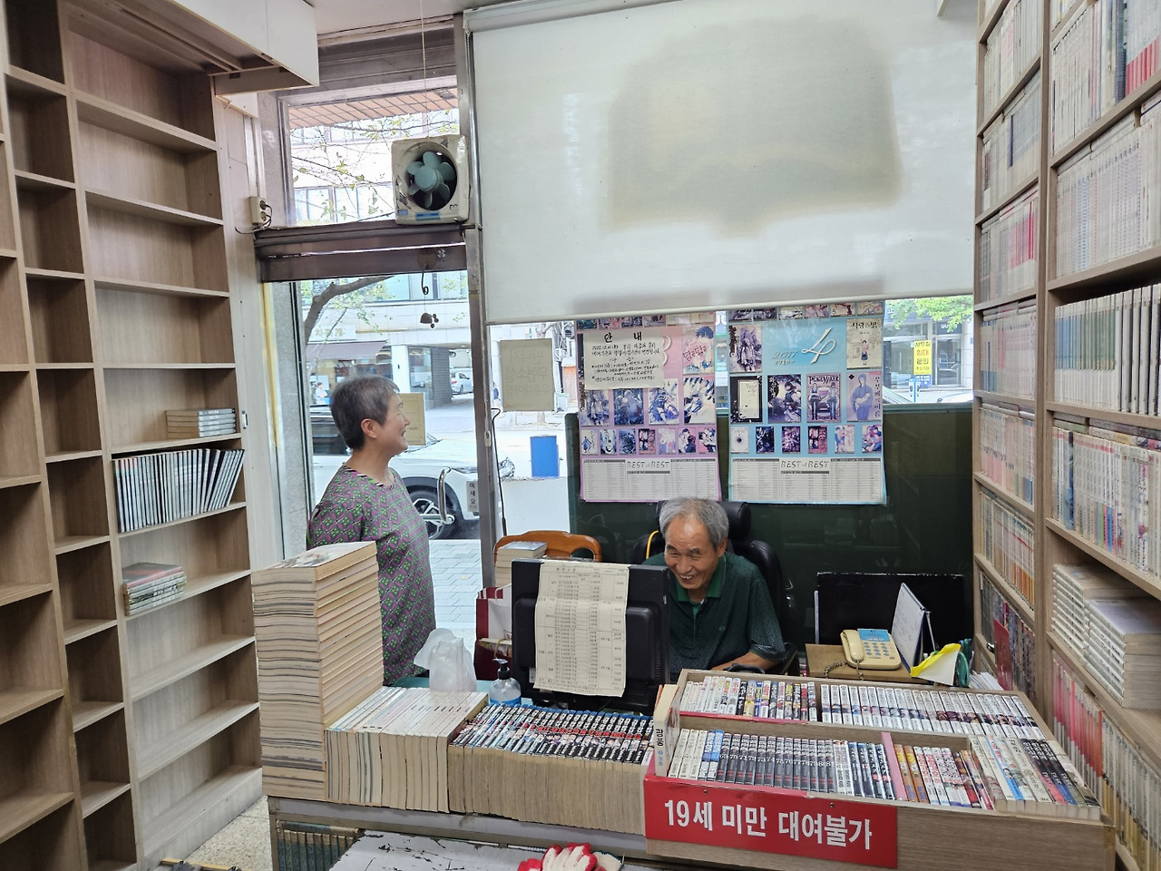 이야기 주제도 다양했다. 세월을 관통하는 동네에 대한 이야기로 시작해서 금융, 보험에 대한 이야기. 각양각색의 보험 사건 처리에 대한 이야기를 좋아하셨는데 아무래도 나에게 있을법한 이야기라 더 그랬는지도 모르겠다. 내 이야기 덕분인가. 최근에는 사장님이 지인의 교통사고 건을 연결해 줘 해결했다. 마지막은 책에 대한 이야기로 끝냈다. 최근 주제는 양재천의 터줏대감이던 동네서점이 문 닫은 이야기였다. 단순히 책 판매뿐만 아니라 독서모임, 매거진 발행 등 책에 대한 애정이 넘치는 가게였다. 수익모델이 빈약한 서점 특성상 임대료만 올라도 버티기 어려운 경우가 많았다. 소울 로케이션의 시작은 양재천이었지만 그 끝은 솔샘 만화방이었다.