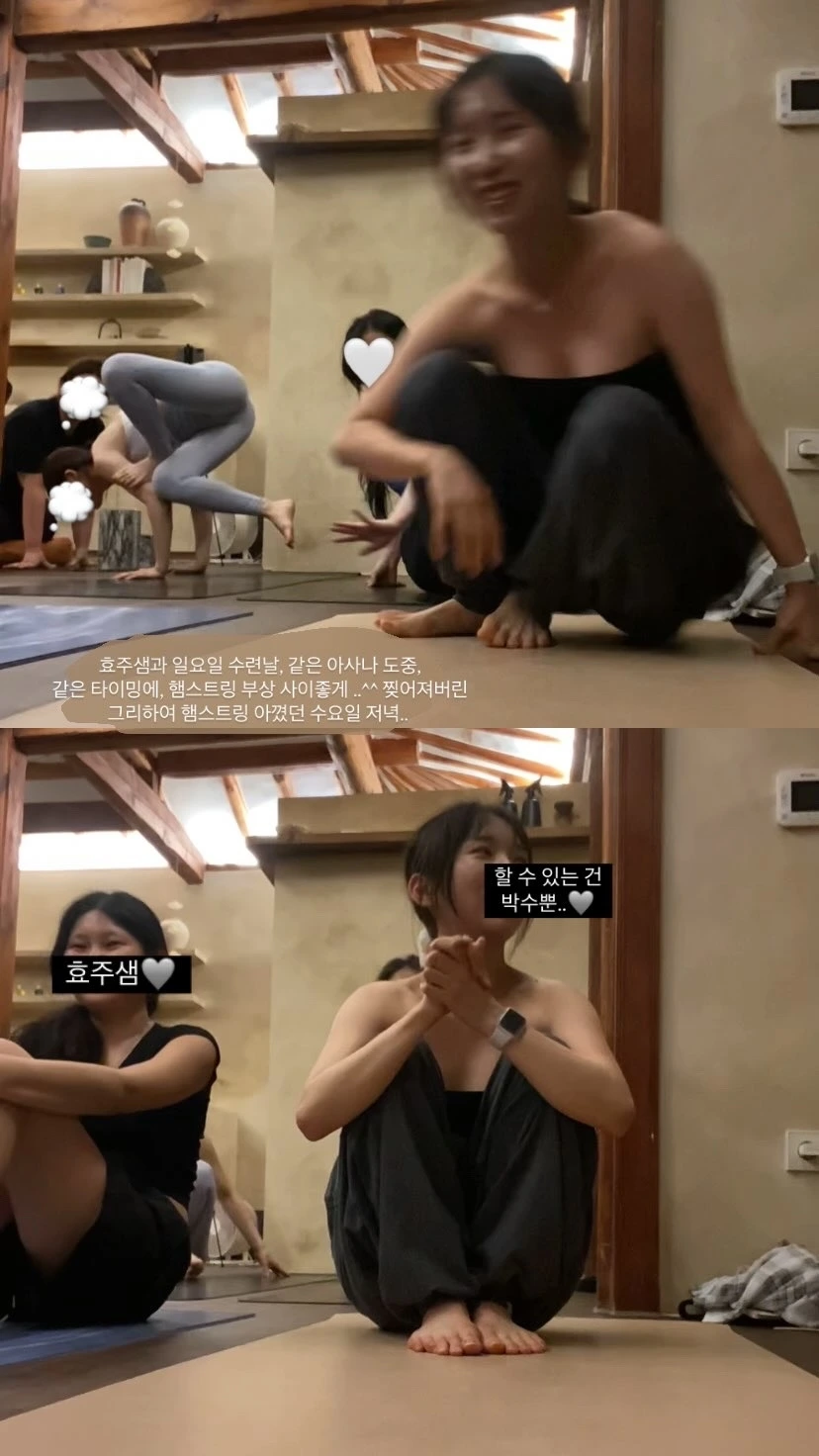 원래는 수업이 끝나면 그대로 빕에서는 수련에 대한 생각이 없었는데 요즘 혼자 몇 동작 더 해보곤 한다. 집에서 가만히 핸드폰을 보다가 문득, 요가매트를 펼치게 되는 날들이 늘었다.