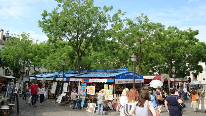 루브르 박물관을 지나 가르니에 오페라 극장까지 간 후에 극장을 바라보며 왼쪽길로 들어서 몇 킬로미터를 걸은 후에 언덕에 도착했다. 경사로를 따라 한적한 주택가를 지나자 멀리 사크레쾨르 성당의 둥근 돔이 나타났는데, 이때부터 골목 곳곳에 분위기 있는 카페와 레스토랑들이 보이기 시작했다. 이 편안한 느낌의 골목에는 억지로 뭘 파는 사람들도 없었다. 정오의 따뜻한 햇빛을 즐기며 천천히 골목을 걸었다. 성당 바로 옆까지 가자 화가들이 벌여놓은 노점들이 모여있는 작은 광장이 나타났다. 지나가는 사람들의 초상화를 그려주는 모습이 이 운치 있는 동네의 분위기와 잘 어울렸다. 나도 몽마르트르 언덕에 온 기념으로 내 초상화를 하나 남길지 여부를 놓고 진지하게 고민했는데, 가격도 비싸고 시간도 많이 걸릴 것 같은 데다 지나다니는 사람들이 쳐다보는 앞에서 어색한 표정으로 앉아있을 자신이 없어 포기했다.
