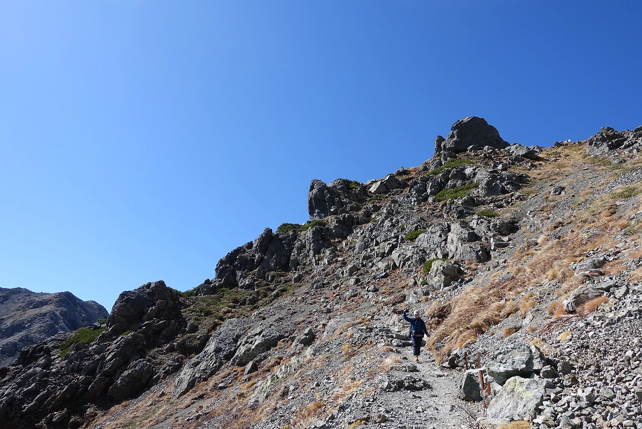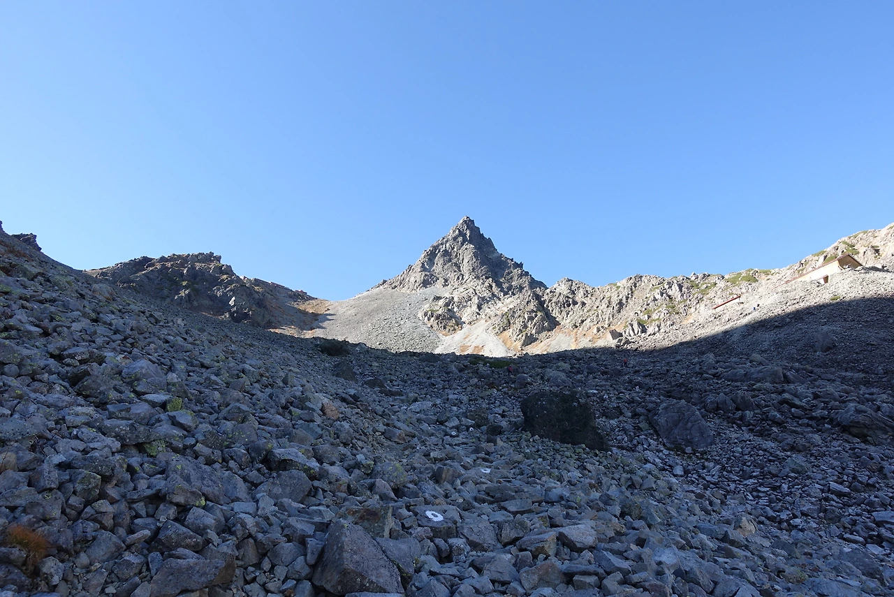 야리사와 롯지 이후로 줄기차게 오름질을 했더니 드디어 야리가다케가 내 눈에 보였다. 산 정상의 모양이 창 끝처럼 날카롭고 뾰족하다는 뜻에서 유래된 “야리”
