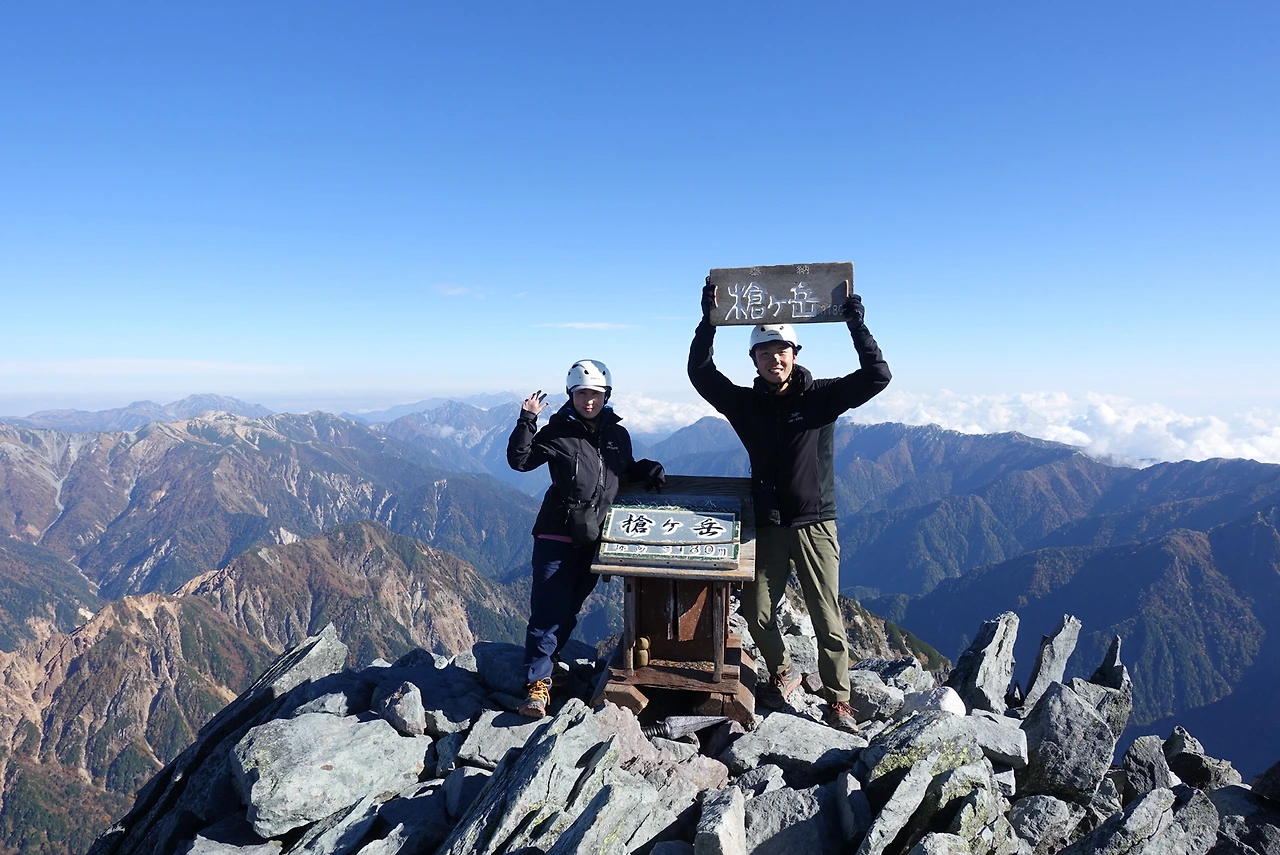 어찌되었건 두려움을 이겨내고 올라간 야리가다케 정상이다. 날씨운은 정말이지 끝내줬고 불어오는 시원한 바람도 좋았다.