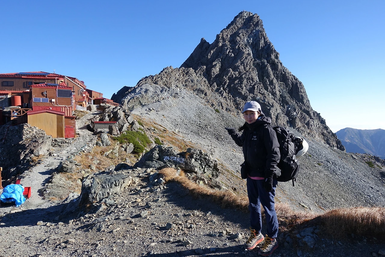 야리가다케가 혹시나 구름에 가려지진 않았나 노심초사하며 바라봤다. (저 곳을 언제나 오를 수 있는 건 아니다. 날씨 운이 따라야한다.)