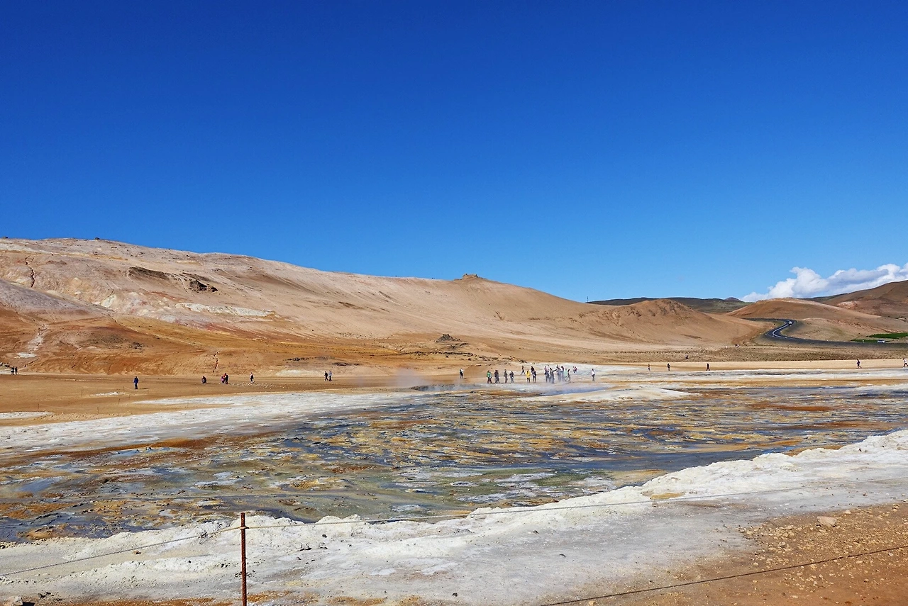 얼음의 땅을 지나 1번 국도를 따라 북쪽으로 달려가면 연기가 한없이 피어오르는 곳을 만나게 된다. 화산지대 불의 땅이다.