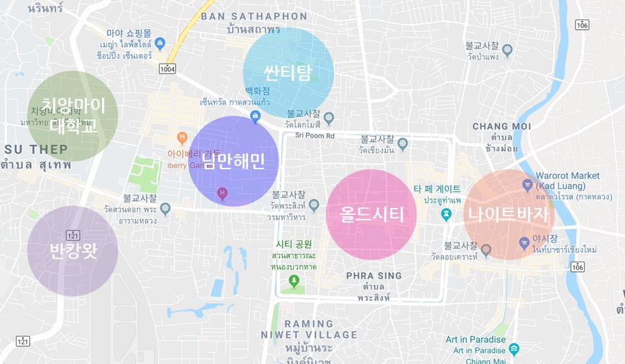 올드타운, 님만해민, 싼티탐. 치앙마이 대학교 근처 등의 지역에서 숙소를 많이 구하는 편이라,