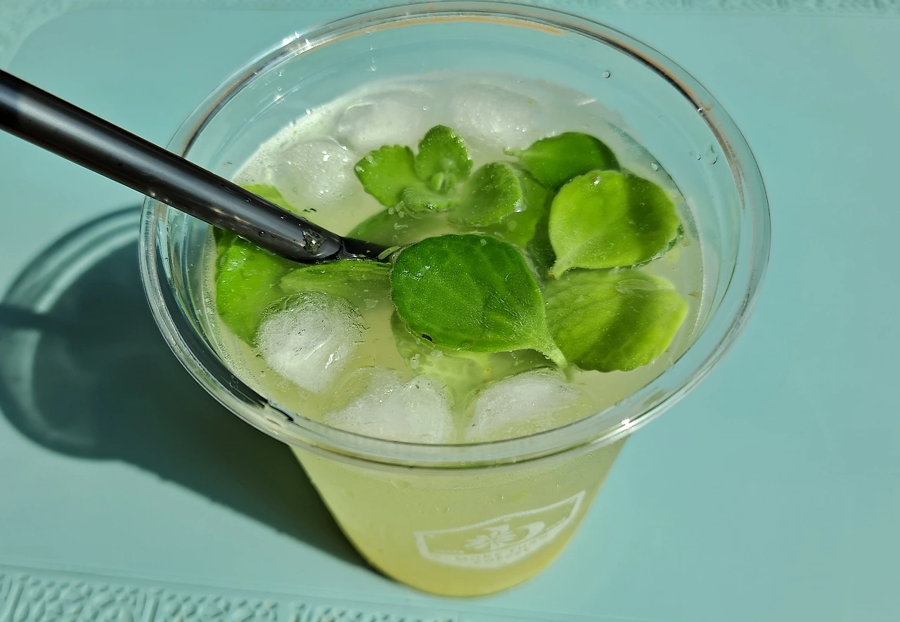 나가기 전에 음료를 만들기로 했다. 지난 주말에 5분 거리에 있는 수변공원에 남편과 함께 산책을 갔는데, 많은 사람들이 손에 시원한 음료들을 들고 다니고 있었다. 한낮에 쏟아지는 햇살에 살짝 땀이 날 지경이었기 때문이리라. 물론 집 앞 카페에서 3,900원이면 한잔 살 수 있지만, 마침 모든 재료가 있기에 집에서 에이드를 만들기로 했다. 며칠 전에 사다 놓은 국화&유자차가 있고, 딸이 사다준 탄산수도 있다. 그리고 주말에 약간 더웠던 터라 바로 얼려둔 얼음도 있다. 거기에 하이라이트! 남편이 친구들과 식물원에 갔다가 받아온 애플민트가 있다. 식물 키우는 재주가 꽝! 인 내손에서 1년이 넘도록 잘 자라고 있으니 재료가 완벽하다. 카페에 가면 고작 2~3장 올려주는 애플민트를 듬뿍 올려 "희야표" 에이드 완성!