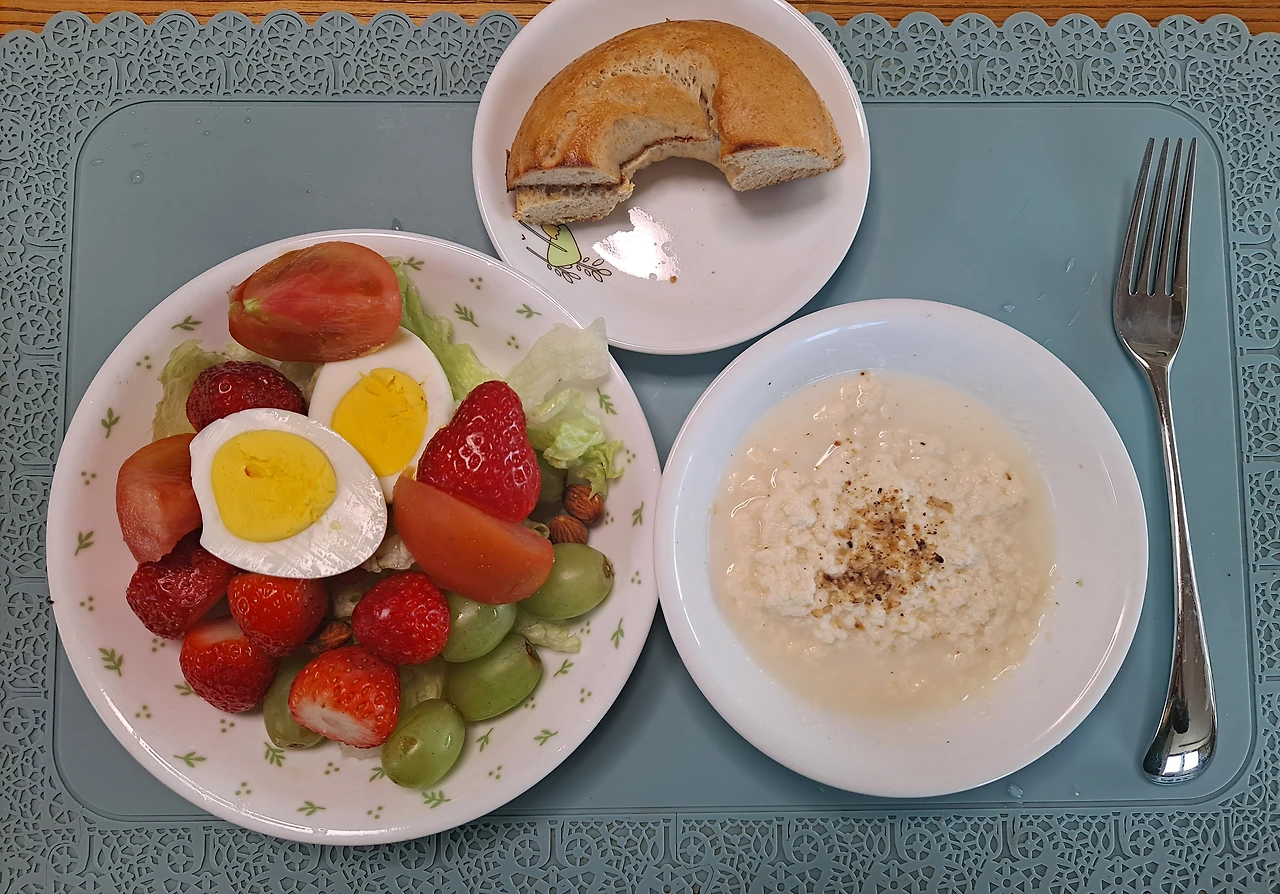 나의 아침은 야채과일샐러드는 동일하나 추가로 순두부 반접시와 밀 것은 소화에 지장이 있으니 아무것도 들어가지 않은 플레인 두부베이글 반쪽이면 족하다. 과일야채샐러드 서너 입만 먹어도 배가 부르기 시작하지만 하루를 살아내야하니 꾸역꾸역 다 먹는다. 설거지를 하고 어쩌다 보니 아침 먹은 것도 그대로인데 점심때가 되어가니 또 먹을 시간인 것이 난감하다. 벚꽃구경도 할 겸 그 근처에 있는 추어탕집에서 정식을 주문했다. 정식이어서인지 콩나물 무침에 오이무침, 겉절이, 깍두기, 샐러드, 추어튀김에 보쌈까지 상이 넘쳐난다. 일단 추어탕 절반과 밥도 절반 덜어내고 추어튀김 두 조각으로 나의 점심은 끝이 났다. 나머지는 옆지가 알아서 다 먹어주니 아깝지 않다.