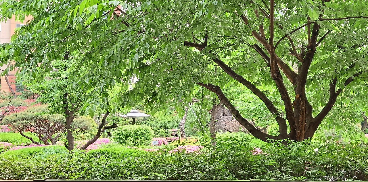 녹음이 짙어져 가는 오월. 어디를 봐도 싱그러움이 온몸으로 스며드는 것 같다. 아파트 현관입구에서 바라보는 풍경이다. 늘 같은 자리에서 서 있을 뿐인데 봄이 되면 꽃이 피고 잎이 나고, 가을이 되면 노랗게 물들어 잎을 떨구며 나목이 된다. 벚꽃나무는 그저 서 있었을 뿐인데 그리 되었을까. 세상에 저절로 되는 것은 드물다. 땅속 깊이 뿌리를 내리며 온 힘을 다해 양분을 채우고, 가지 뻗어 햇살을 모으고 바람결에 이슬 머금으며 하루도 쉬지 않은 날이 없었다. 게으름은 사의 세계요. 부지런함만이 푸른 생명의 증표처럼 이 봄날 저 프레임 안에 찬란하게 서 있다.