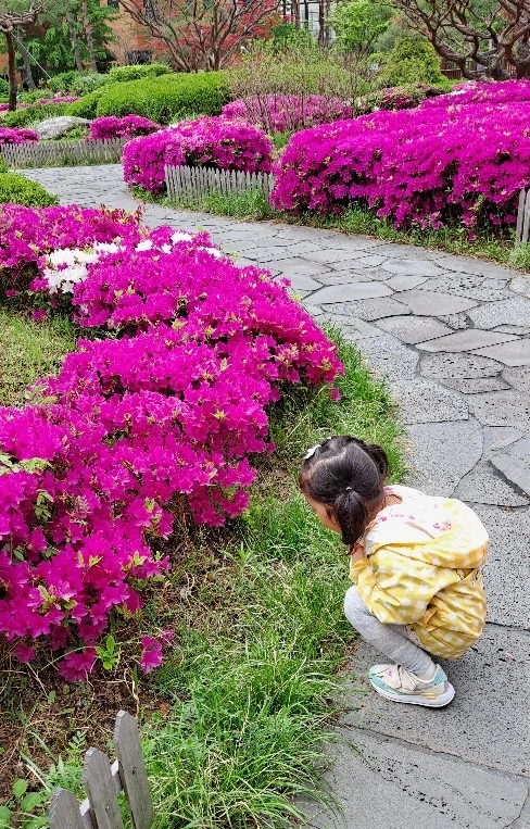 이른 아침부터 꽃산책길에 가자는 세 번째 꼬맹이 성화에 활짝 핀 아파트 정원 꽃길을 함께 걸었다. 쭈그리고 앉아 하얀 민들레 꽃씨를 입으로 호호 불어대지만 줄기만 휘어질 뿐 꼭 붙어서 날아가지를 않는다.