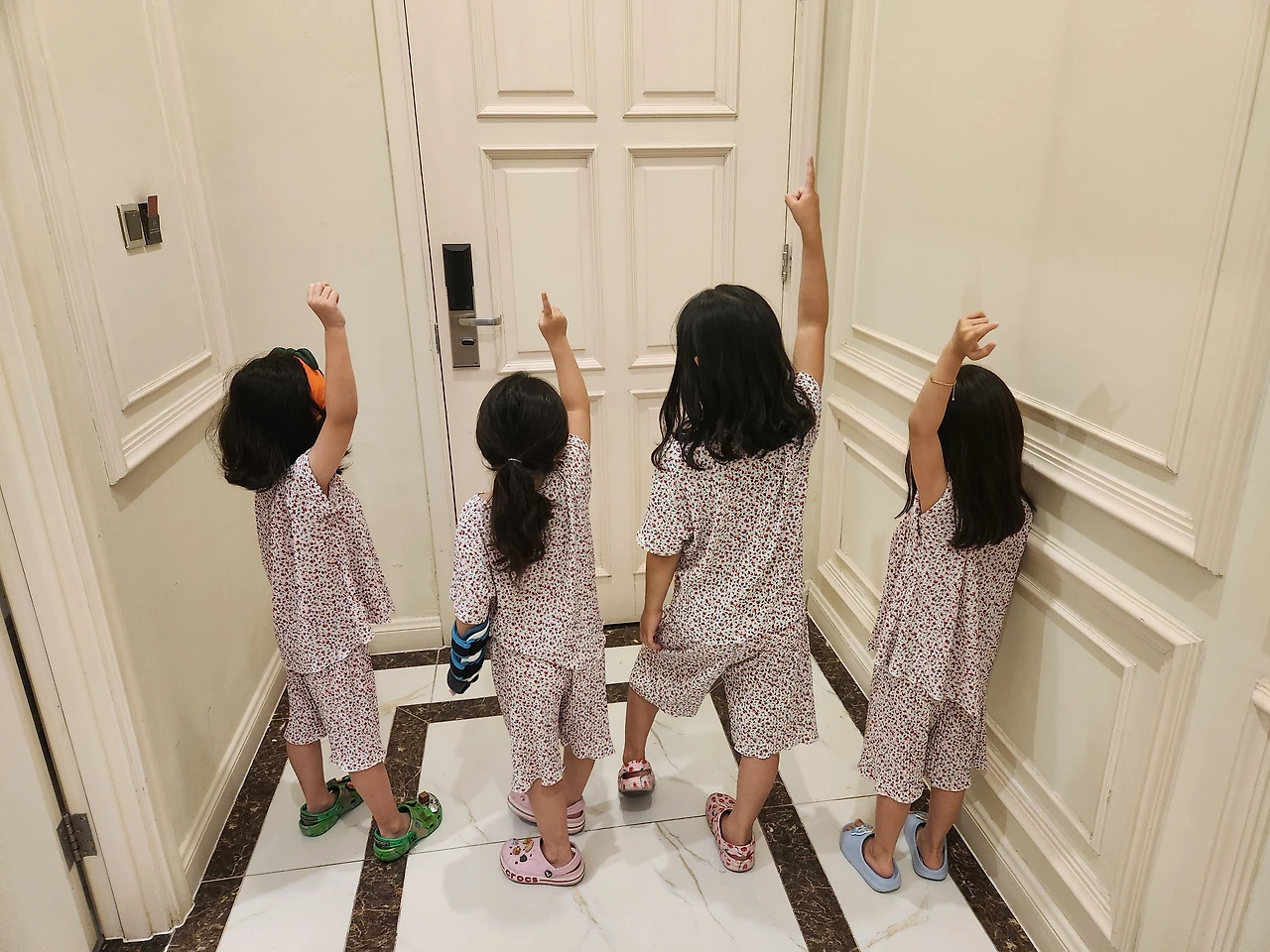 새벽 1시경 베트남행 비행기로 떠나는 천사(손녀의 태명)의 모습이 카톡방으로 속속 올라왔다. 의젓하게 본인의 캐리어를 밀고 가는 모습에 입꼬리가 끝도 없이 올라간다. 발걸음도 씩씩하게 저리도 좋을까. 아내는 집에 두고 딸들만 데리고 국내가 아닌 베트남의 리조트로 가기 위해 네 명의 아빠들이 공항에 떴다. 보기만 해도 듬직하니 네 명의 아들들이 무척이나 자랑스럽다.