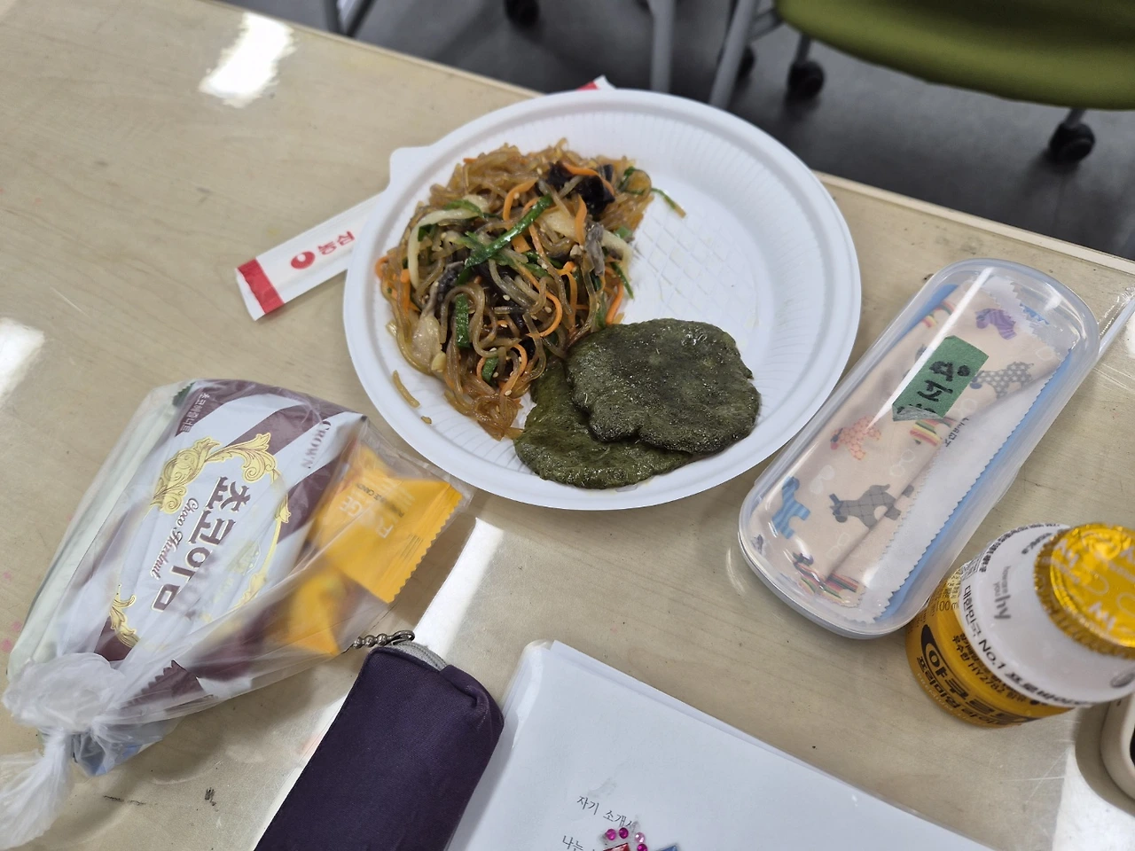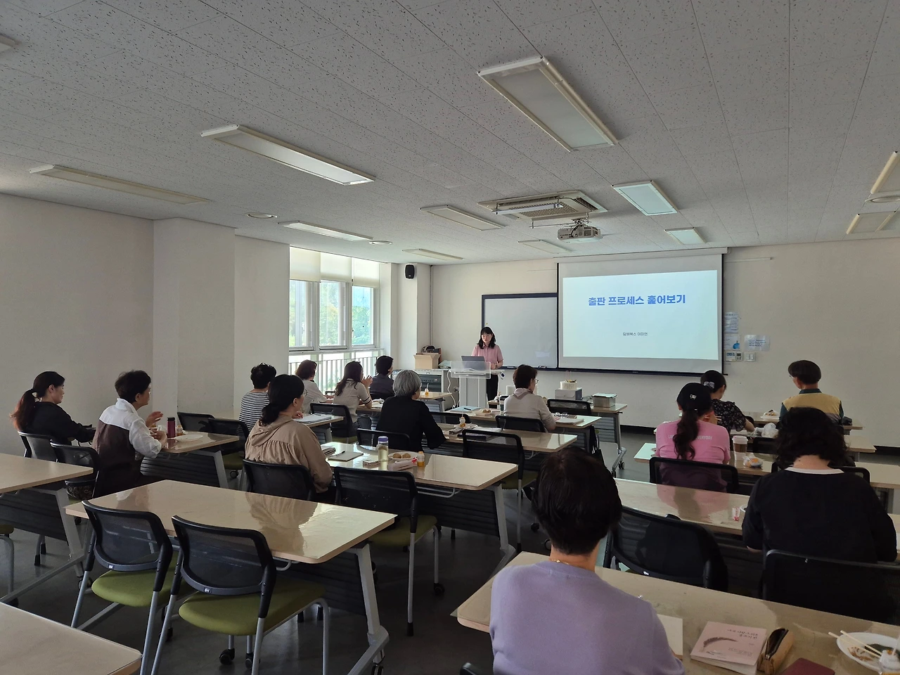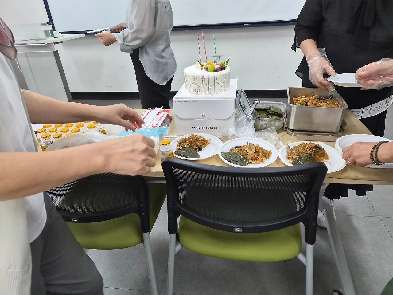 세 번째 목요일에는 선생님이 문집발간을 축하하기 위해 사 오신 케이크와 회원분이 새벽부터 일어나 만드셨다는 잡채, 삶은 감자, 초콜릿, 음료, 쑥개떡, 내가 만들어간 과자꾸러미까지 푸짐한 잔칫날이었다. 열정이 가득한 선생님은 마지막 날까지 편집자를 초빙하여 투고에서 책이 나오기까지의 과정에 대한 강의를 들을 수 있게 해 주셨다. 나와는 상관없는 일이라 여겼는데 강의를 들으니 투고 기획안이라도 써보면 어떨까 하는 말 같지도 않은 생각을 해보았다.