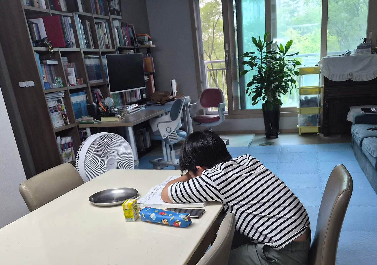 이미 학원 갈 시간은 지나버렸는데도 다 풀기 전에는 갈 수 없다고 버티는데 난감했다. 작년까지만 해도 경시 대회 문제가 나오면 머리를 맞대고 같이 풀기도 했지만, 문제도 만만치 않고 식사를 준비하는 시간까지 빼앗겨 버려 하루가 엉망이 되었다. 딸도 늦게 퇴근하는 날이면 도와줄 시간이 없고, 사위는 회사일과 본인 공부만으로도 밤을 지새우니 다른 방법이 없었다. 그래서 보낸 수학 학원인데 경시 대회 문제가 안 풀릴 때마다 저리 울고불고 난리다.