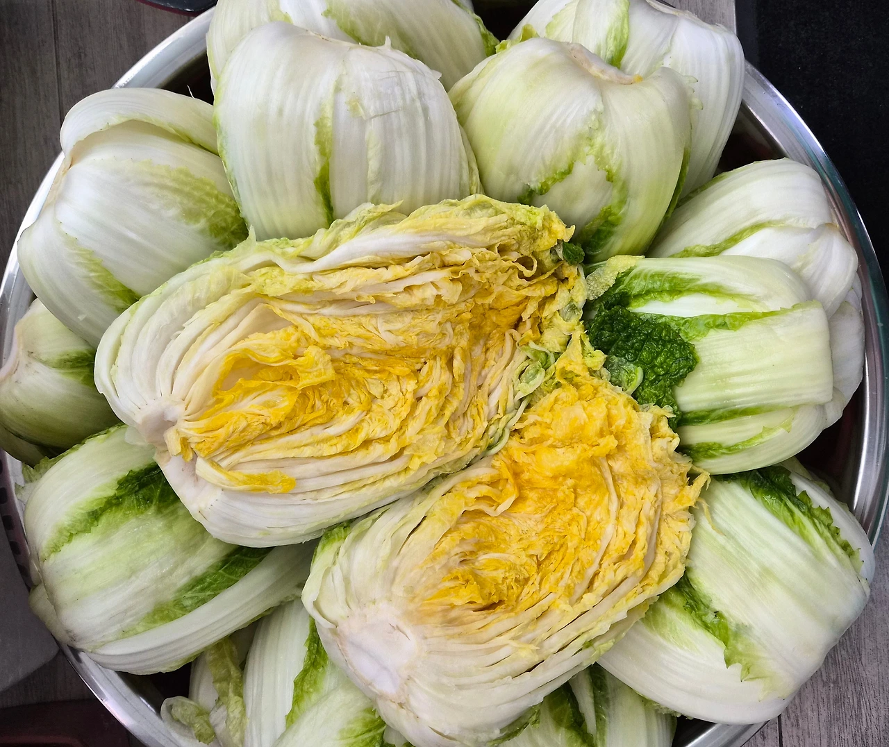 그게 끝이 아니다. 다음날 배추김치를 담그기 위해 찹쌀 풀을 쑤고 멸치. 북어, 새우, 다시마 등을 넣고 육수를 끓였다. 눈이 감겨 온다. 머리가 베개에 닿자마자 잠이 들었다. 잠결에도 배추김치를 담그느라 뛰어다니는 꿈을 꾸었다. 비몽사몽간에 일어나 아침을 먹은 후 비타민과 홍삼진액으로 기력을 보충하고, 마늘을 다지며 김장 속 재료를 준비했다. 남편은 가을인데 단풍 구경 한 번 못 가고 사서 고생한다며 입이 한 자는 나와 계시다. 바로 배추를 절이려던 계획을 미루었다. 함께 외출하여 점심을 먹으며 다독이고 돌아와 저녁 무렵에 배추를 절였다.