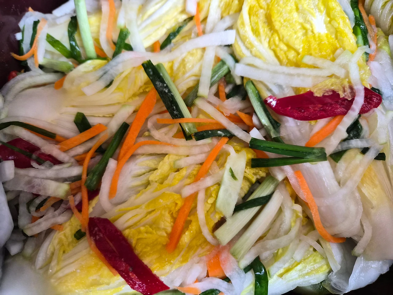 설 명절에 김치만두를 했더니 김장김치가 훌쩍 줄었다. 한여름까지 먹으려면 다른 김치가 그 자리를 간간이 채워줘야 한다. 하여 열무김치를 담그기 전에 알배기 배추로 아삭하고 시원한 훈이, 윤이도 잘 먹는 백김치를 담가보기로 했다.