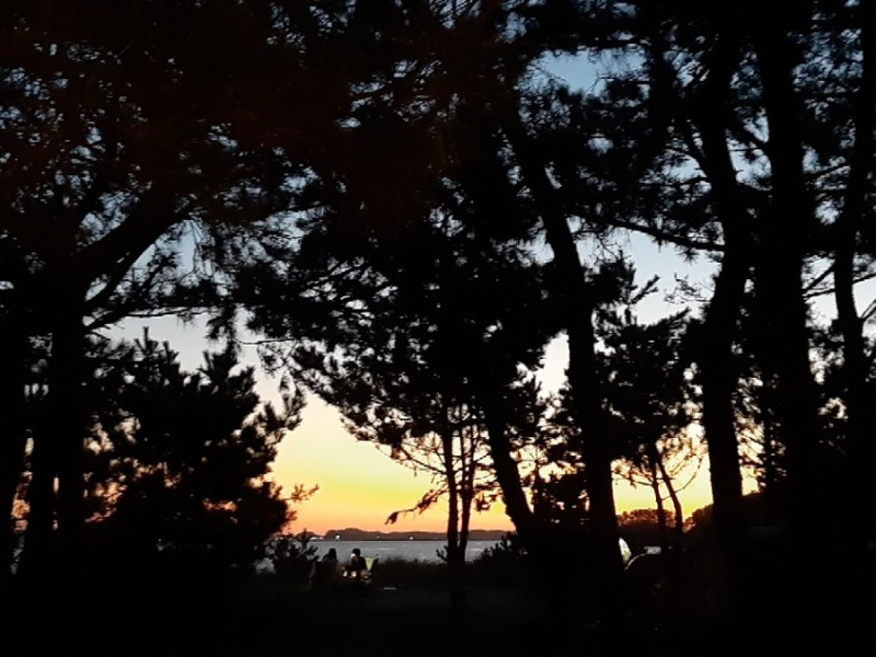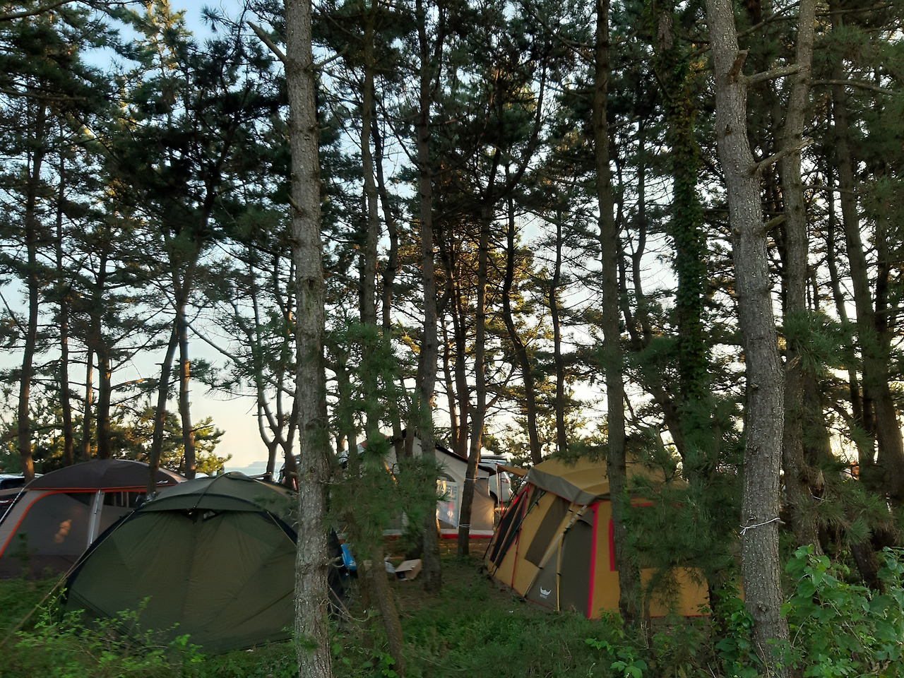 우리가 자리 잡은 곳은 오봉산해수욕장이다. 해수욕장 뒤로 오봉산이 보인다. 다섯 형제가 어깨동무를 한 것 같다는 낮은 산이다. 오봉산 해변은 백사장을 따라 소나무 숲이 우거져 있어서 텐트를 어느 곳에 쳐도 햇빛을 막을 수 있다. 어느 곳이든 명당이다. 전기 사용이 안 되고, 모래가 섞인 흙바닥이니 깨끗하고 깔끔함을 우선순위로 생각하는 캠퍼들에게는 비 인기 장소일 것이다. 하지만 우리에겐 딱 알맞은 장소다.
