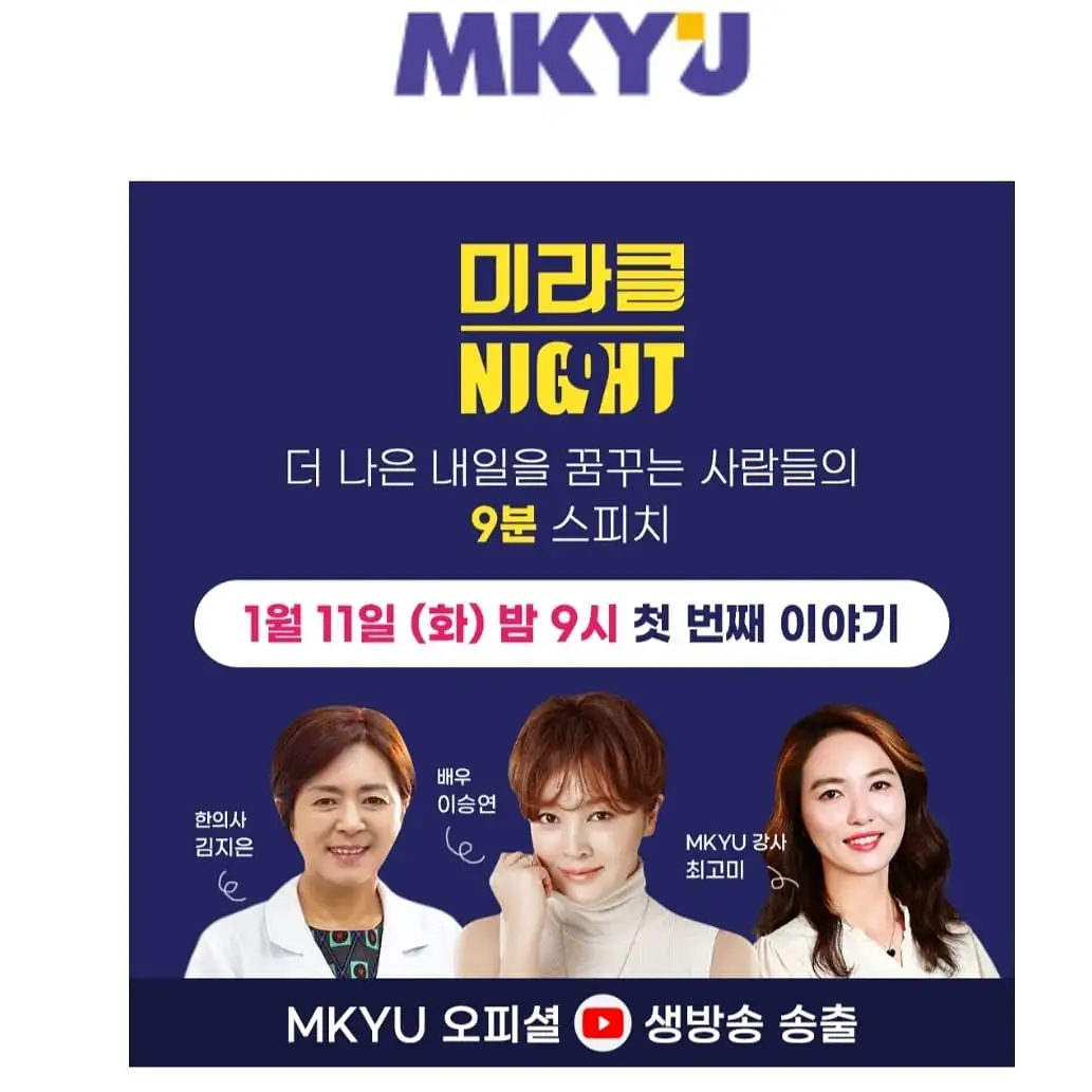 MKYU official 유튜브에서 생방송으로 진행되오니 온라인객석에서 세 분의 열정대학생분들께 뜨거운 박수 부탁드립니다.