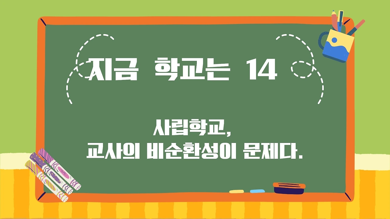 교사채용 비리를 저지르고 교장과 교감으로 승진하고자 선생님에게 1억 원을 상납받고, 학교 재산을 횡령하기까지 사학비리는 일일이 나열할 수 없을 정도다.