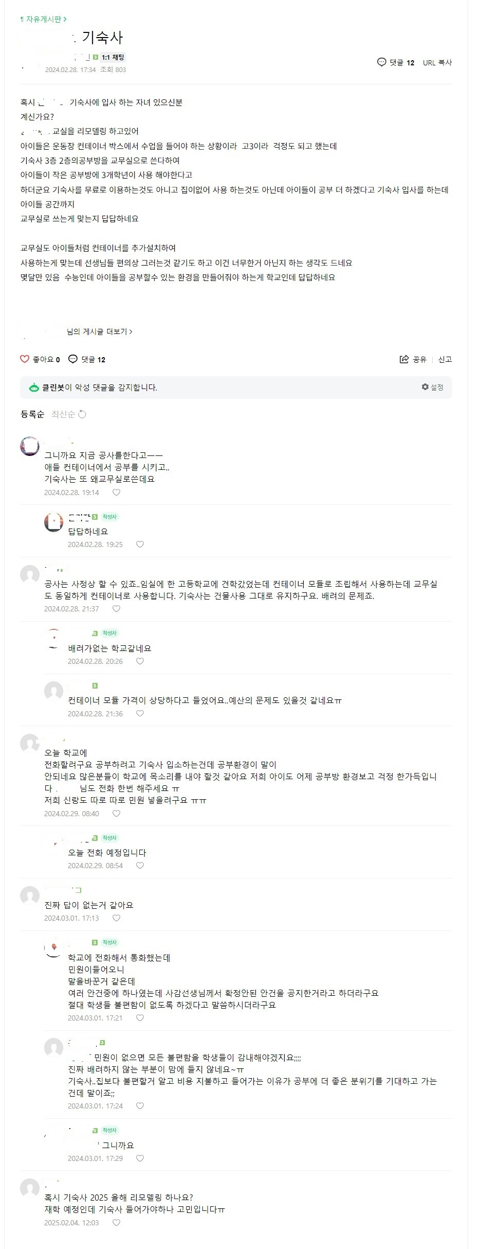 면담을 하고 집으로 돌아와서 인터넷 검색을 했다. 아마도 인터넷에 소개된 5년 동안 정도의 학교 관련 소식은 거의 전부 본 것 같다. 마침내 학교 리모델링 소음에 대한 이야기가 소통되는 지역 커뮤니티를 발견했다.