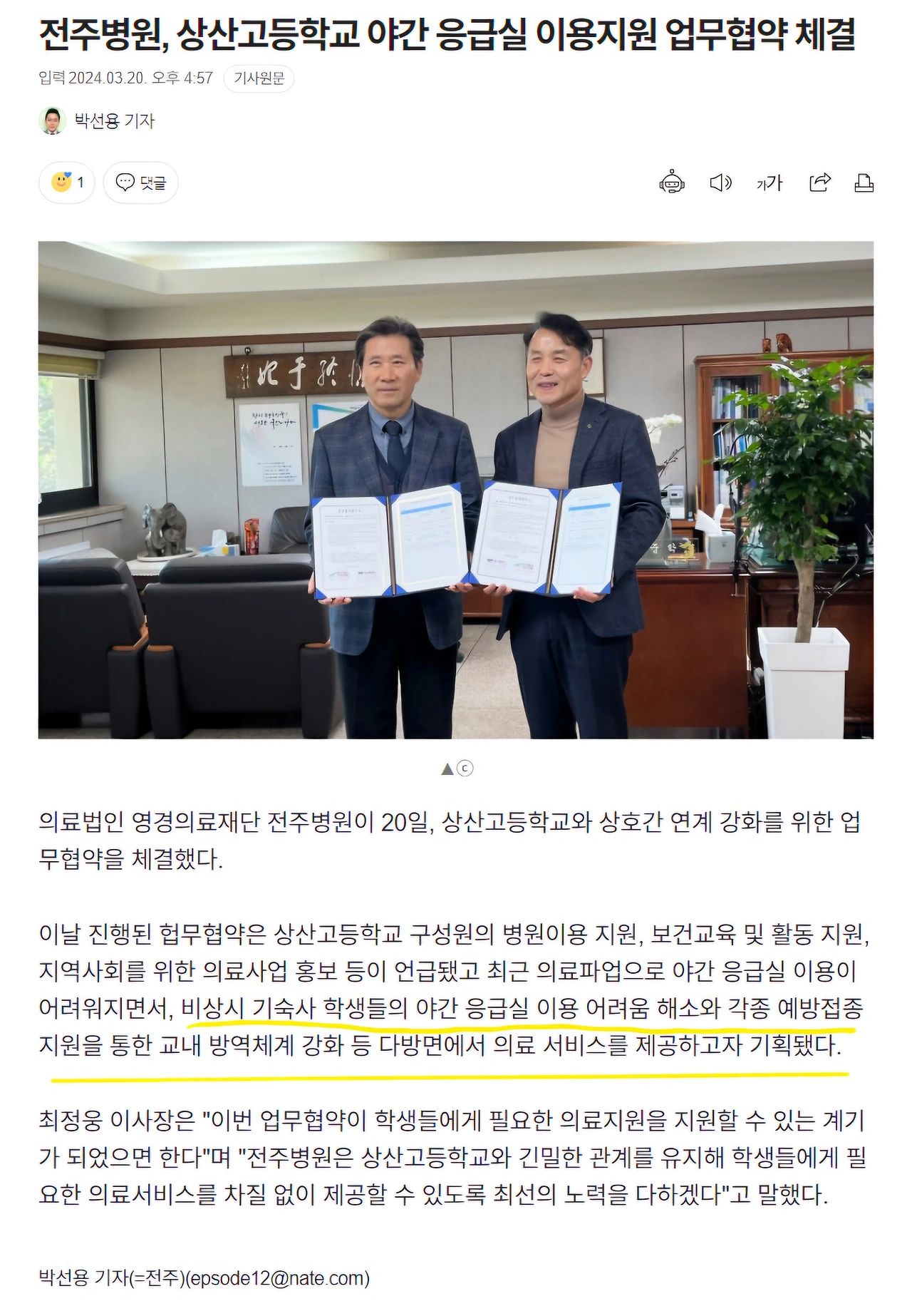 생길 것을 대비해서 지역 병원과 업무 협약을 체결하여 신속한 진료와 치료가 이루어질 수 있도록 학교장이 노력하는 모습을 보여주었다. 얼마나 비교가 되는가. 더구나 의료 공백 상황이었으니 학교는 이를 대비하지 않을 수 없었을 것이다.
