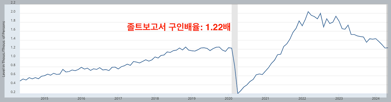 즉 현 수준의 구인배율 1.22배는 파월 연준의장의 금리인하 조건에 충족하게 될 수 있습니다.
