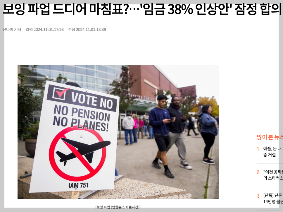 최근 미국 항공 제작기업 보잉은 파업 진행 중이었는데요. 이때 파업에 가담한 인원은 약 3만 3천명 정도였습니다.