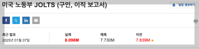 졸트보고서는 '구인공고 건수'를 보여주는 지표인데요. 즉 11월 미국의 구인공고는 증가했음을 의미하고, 이에 따라 고용시장이 강하다 해석을 합니다.