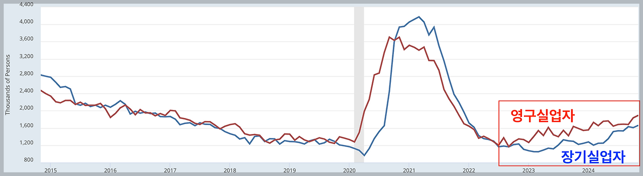 그리고 영구실업자 및 장기실업자도 최근 계속해서 증가하는 추세입니다. 결국 일자리가 있어도 실질적인 채용이 없는 상태인 거예요.