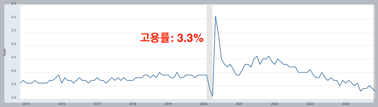 실제로, 이번 고용률을 보면 3.3% 수준이며 코로나 전 상태보다 더 낮은 수준을 보여줍니다. 졸트보고서에서 보여주는 3.3% 수준의 고용률은, 과거 2013년 당시 실업률 8% 가까운 수준을 보여주던 고용 상태입니다.