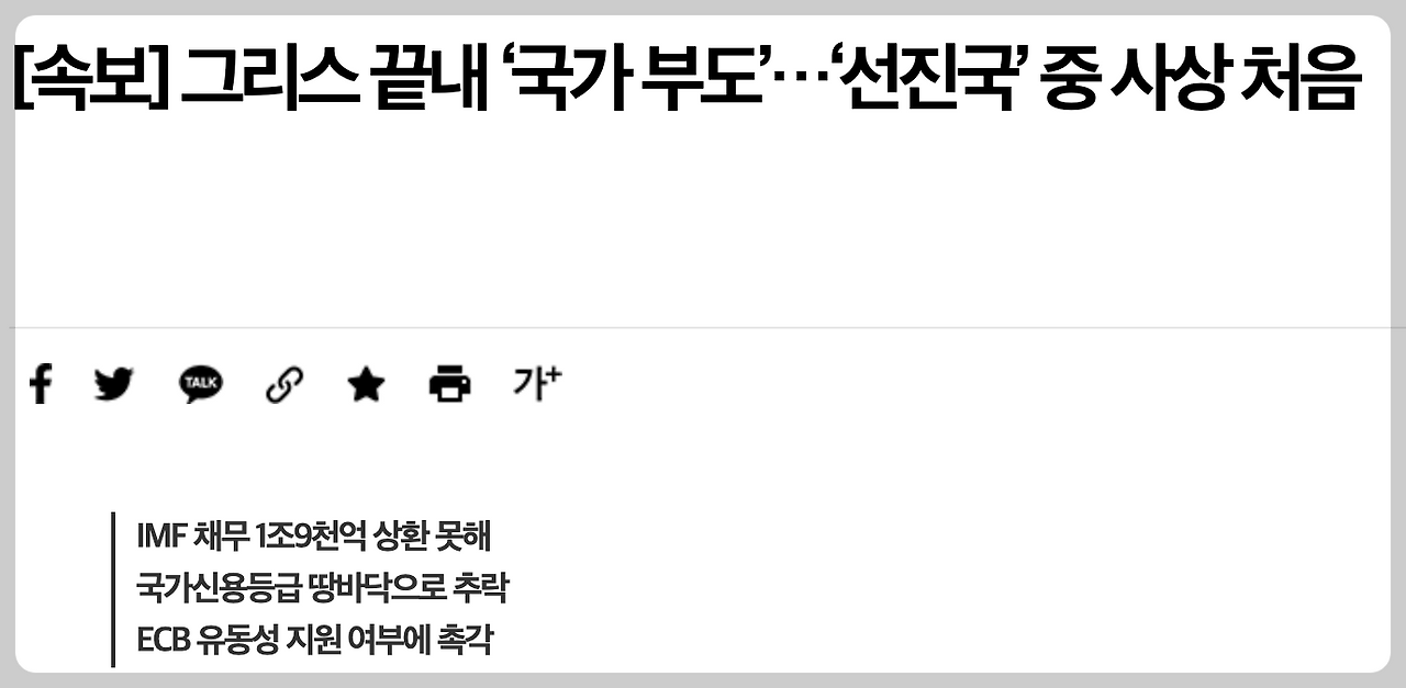 2008년 금융위기 이후, 2011년 유럽발 재정위기가 덮친 후 2013년부터 그리스 부도설이 등장하면서 결국 그리스는 국가부도 선언을 했습니다. 1997년, 한국도 국가부도의 날이 있었습니다. 그 유명한 IMF 외환위기이죠.