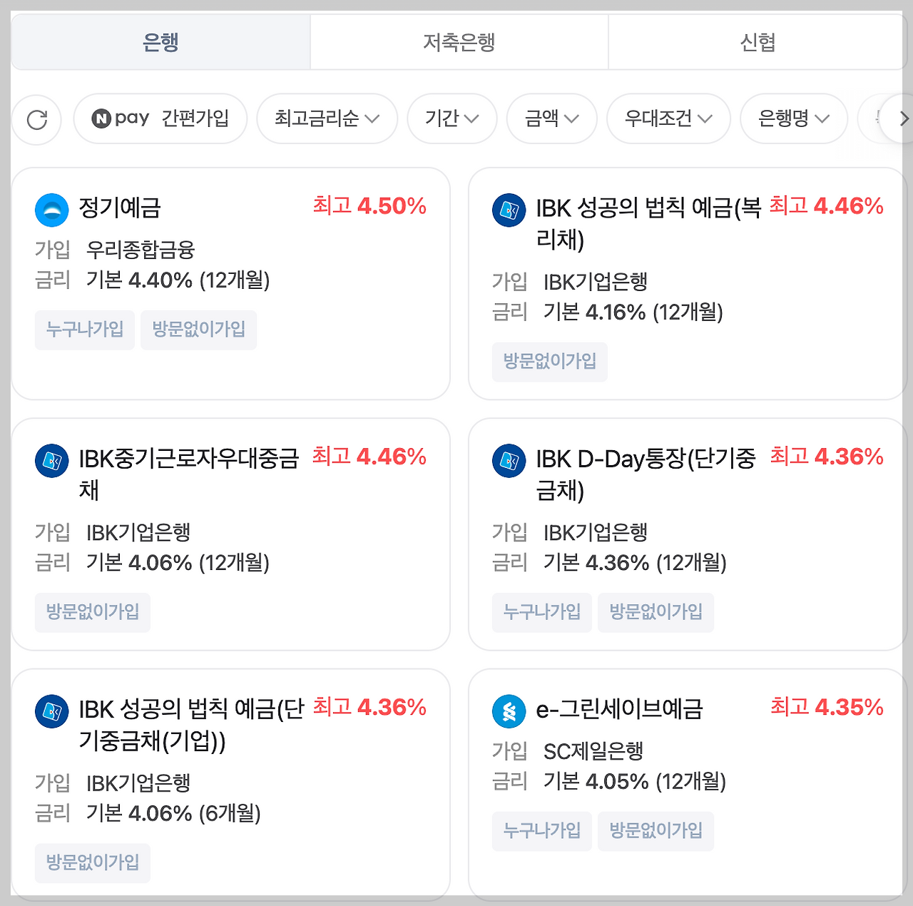 물론 절대적인 금리 수치만 본다면 예금금리가 약 1%p 정도 더 높게 형성되어 있기는 합니다. 그러나 우리는 [기간]을 함께 봐야죠.