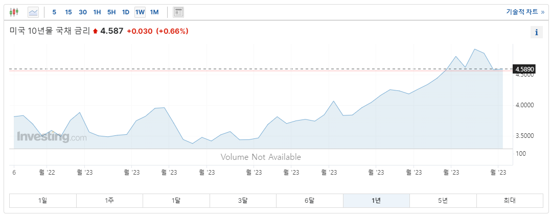 지난 3월 실리콘밸리뱅크의 파산 때 미국 장기금리는 3~4%대였습니다. 지금 4.5%가 과연 낮은 걸까요? 이 금리로 절대 안심하기에는 이릅니다. 한참은 더 떨어져야 될 것 같아요.