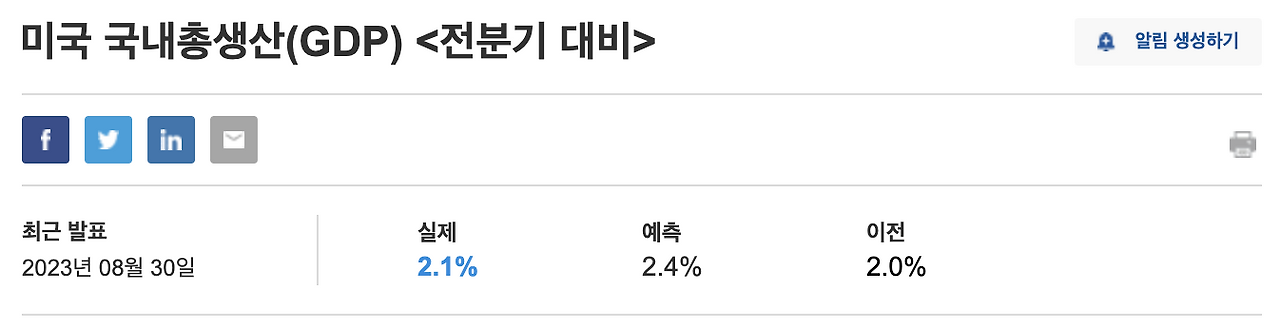 최근 8월 30일, 미국의 GDP성장률이 발표되었는데요, 이번에 발표된 GDP성장률은 2.1%로 예상치 2.4%를 하회하는 수치를 보였지만 그럼에도 이전치 2.0% 보다는 0.1%p 상승하긴 했습니다.