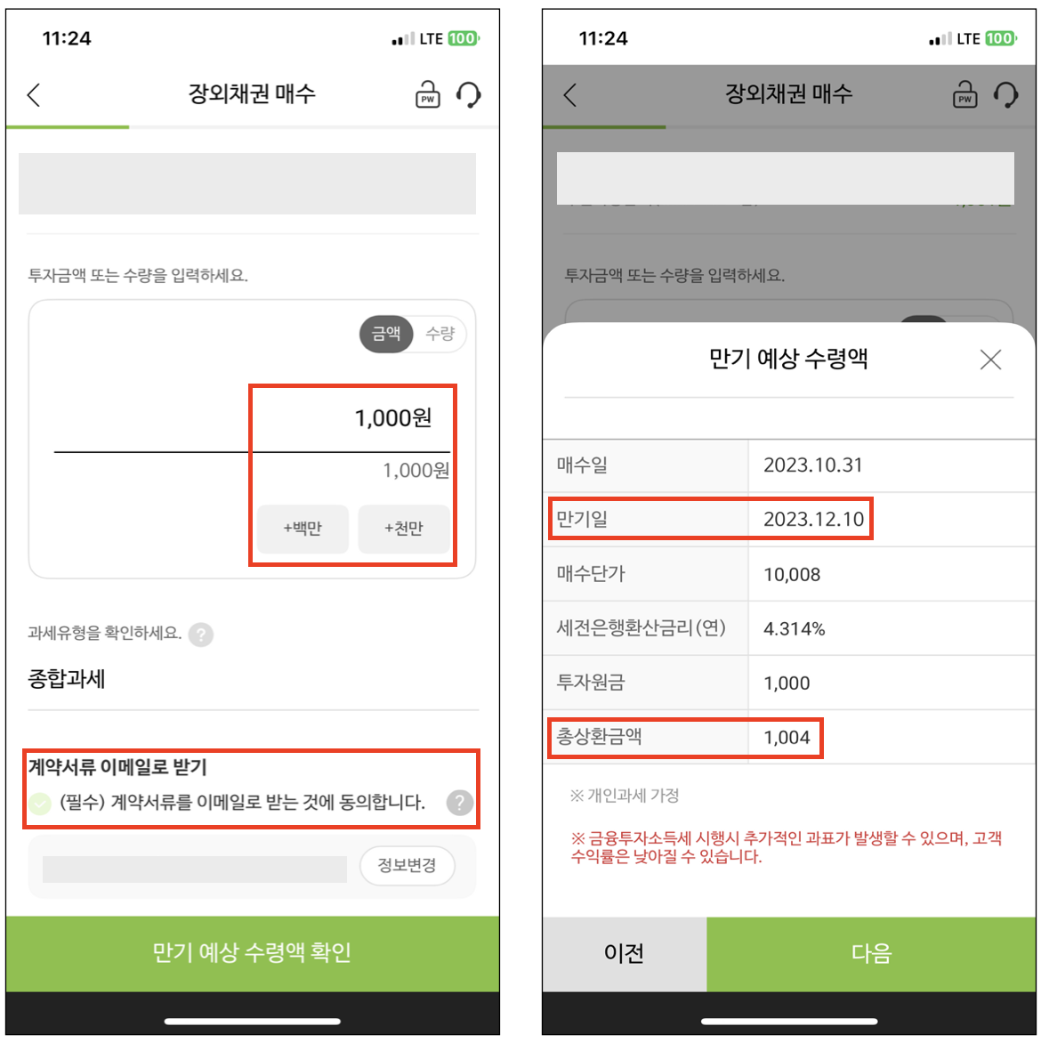 그리고 '다음'을 누르고 넘어가면 채권을 매수하게 됩니다.