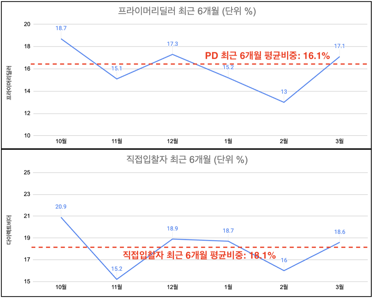 낙찰금리와 W.I 금리의 스프레드를 보는 건