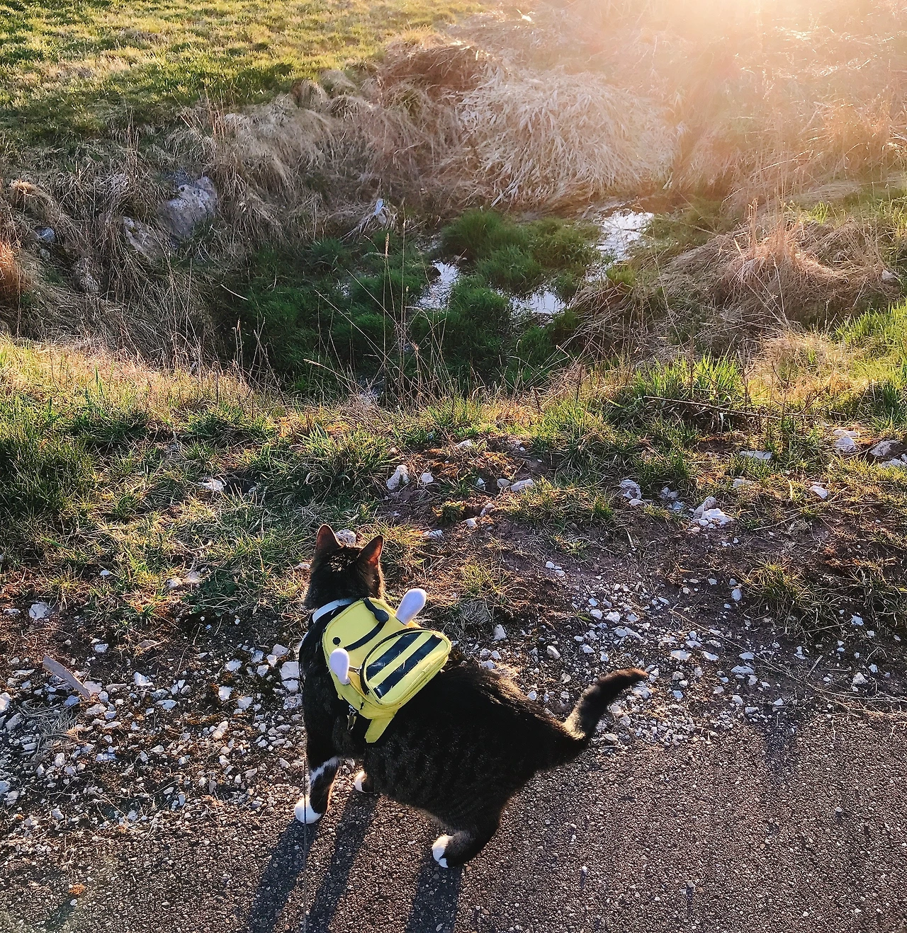한국에 사는 사람들이 보면 기겁할 산책냥이인데, 고양이가 외출을 원했고, 의사와 충분히 상담을 한 뒤 하고 있는 일이며 이미 10년째 무탈하게 하고 있다.