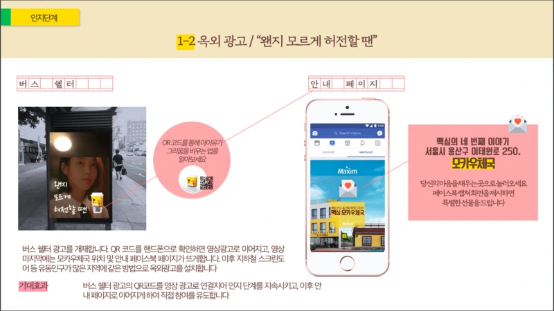 그렇기에 요즘에는 광고 대행사에서도 더 디테일하게 논의될 수 있도록 와이어 프레임의 요소를 넣어 스토리보드를 작성한다.