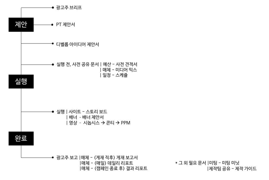 여기까지 광고 대행사 AE의 전반적인 업무와 그에 따른 필요 문서들을 정리해보았다.
