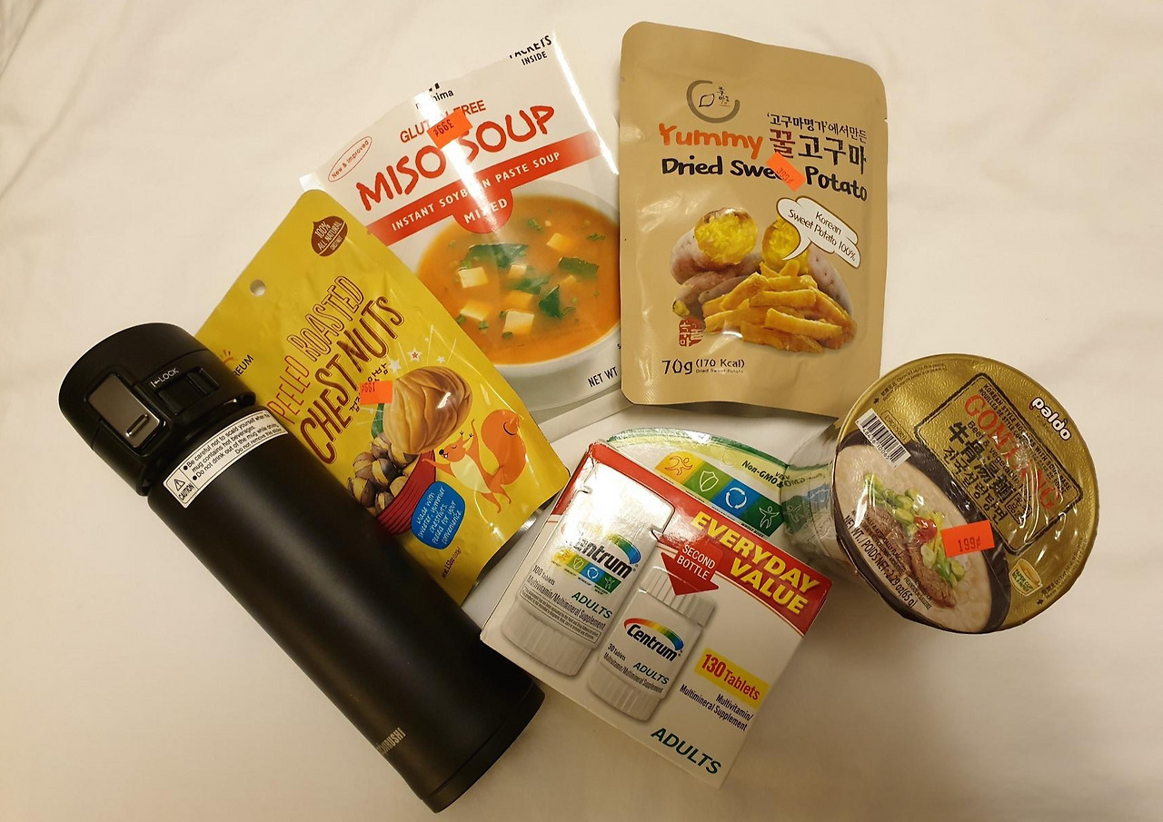 마지막으로, 국!! 뜨거운 국!!!! 여기는 미국이지만 아빠는 매 끼마다 뜨거운 국물을 찾으셨다!!!! 다행히도 호텔에 커피머신이 있어서 뜨거운 물을 받을 수 있으니, 여기에 타 먹을 국 가루와 국을 담을 보온병이 필요했다.