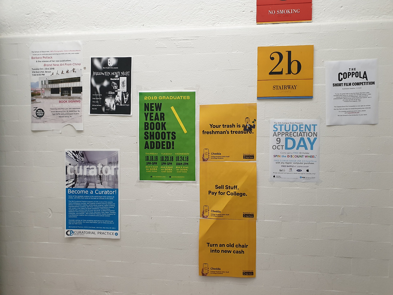 아빠 덕분에 나도 뉴욕의 이미지를 한마디로 정의할 수 있게 되었다. 뉴욕은 소박한 곳이었다..! 주변을 둘러보니 뭐가 없긴 하다. 썰렁한 흰색 벽면에 붙어있는 교내 행사 안내 포스터, 졸업 사진 촬영 안내문, 커다란 시간표… 모든 것이 그대로였다. 게시판에 붙어있는 학생들의 과제작도, 한국어로 되어 있어서 ‘한국인 Only’를 대놓고 표방하는 각종 전단들까지.