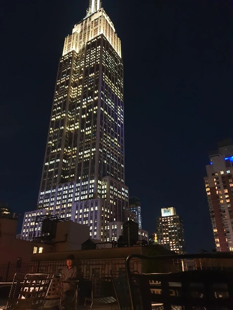 숙소로 돌아오니 뭔가 아쉬웠다. 호텔 옥상에서 보는 야경이 근사하다는 평이 떠올라서, 피곤한 아빠를 졸라 위로 향했다. 그리 높지 않은 건물이라 우뚝 솟은 엠파이어 스테이트 빌딩의 전신이 동공에 꽉 찼다. 마치 출세한 것 같은 기분이 들었다. 맨해튼 한복판, 엠파이어 스테이트 빌딩을 한눈에 담을 수 있는 호텔에서 숙박이라니.. 아빠는 춥다며 먼저 방으로 내려가셨지만, 나는 바람과 추위에 꿋꿋이 맞서며 언제 다시 볼 수 있을지 모를 미드타운 중심지의 야경을 최대한 눈에 담았다.