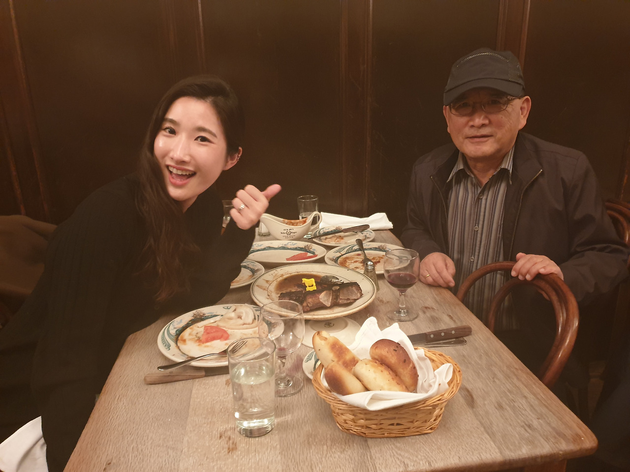 웬 할아버지냐고? 테이블 사이를 우아하게 오가는 종업원들이 대부분 노인이다. 아빠는 여기 직원들은 다 나이가 많아 보인다면서, 우리나라에서는 좀처럼 보기 힘든 광경인데 특이하다고 하셨다. 듣고 보니 또 그러네. 한국에서 자영업자를 제외한 고령의 아르바이트생을 본 적이 있었던가?
