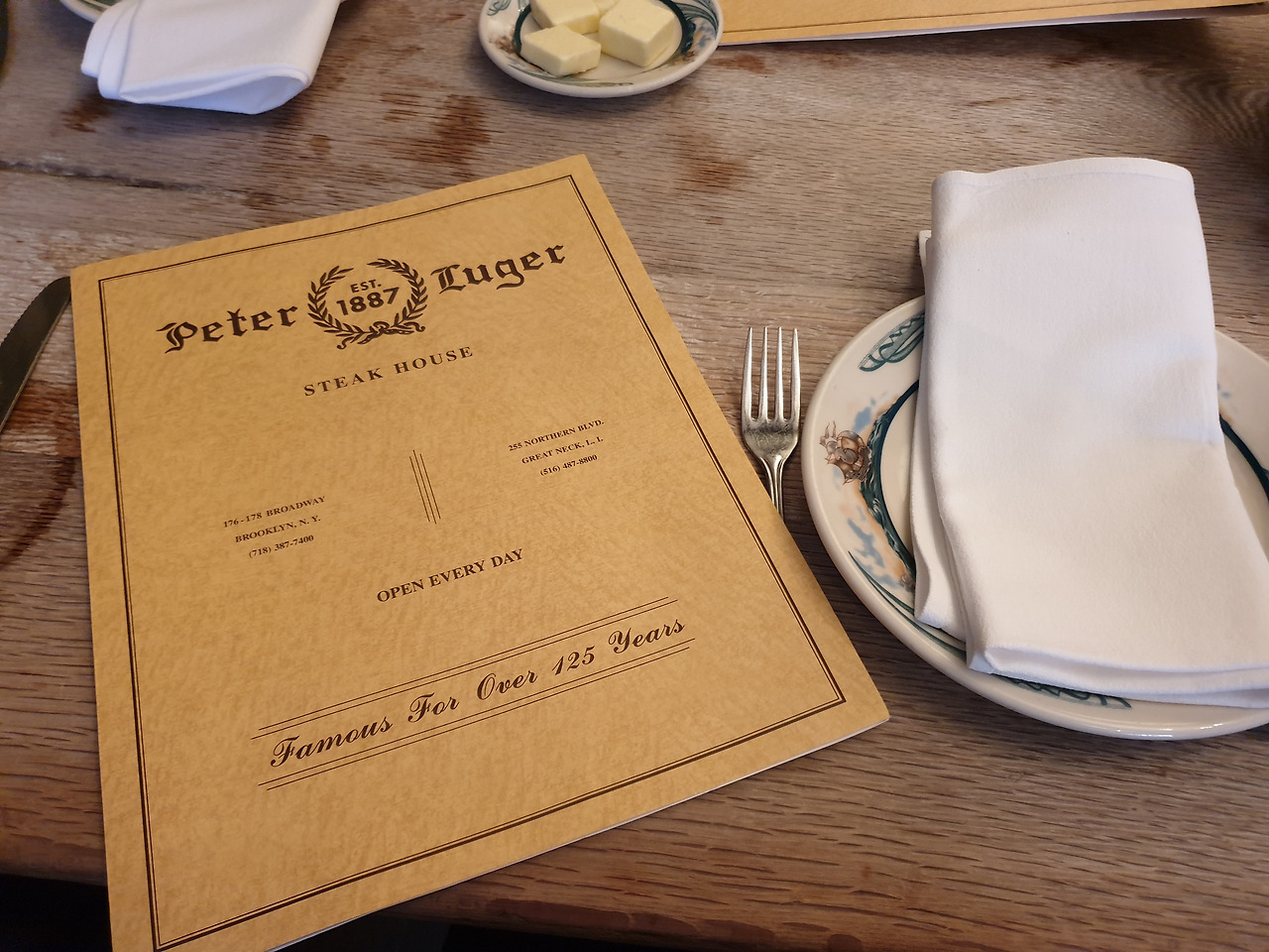 그때는 그곳이 그렇게 유명한 식당인지 몰랐는데, 한국에 들어오고 나서야 거기가 엄청난 스테이크 하우스라는 사실을 알게 되었고 기필코 성공해서(!?) 그곳의 고기를 먹어보겠노라 마음먹었더랬다. 지금이 바로 꿈을 이룰 절호의 찬스. 무엇보다도 아빠는 고기를 사랑하시니까! 스테끼 러버! 눈물 나는 성냥팔이 소녀의 이야기를 가니쉬 삼아 광란의 육즙 파티를 벌이기 위해 여행 3개월 전부터 새벽 4시에 일어나 전화를 걸었고 일곱 번 만에 간신히 예약할 수 있었던, 여러모로 안달 나게 하는 피터 루거다.