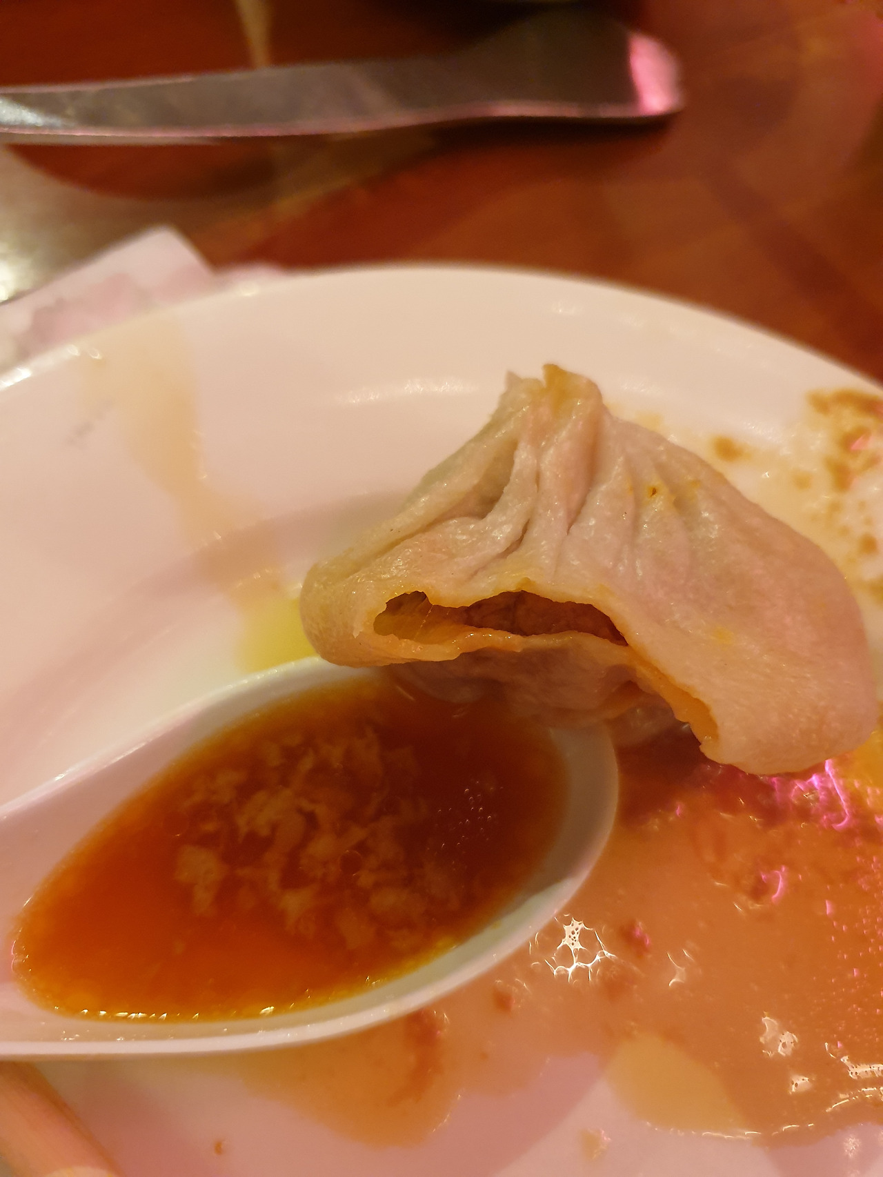 "헐. 소룡포 모르세요? 만두 같은 건데, 안에 육즙이 가득 차 있는 국물 만두야."