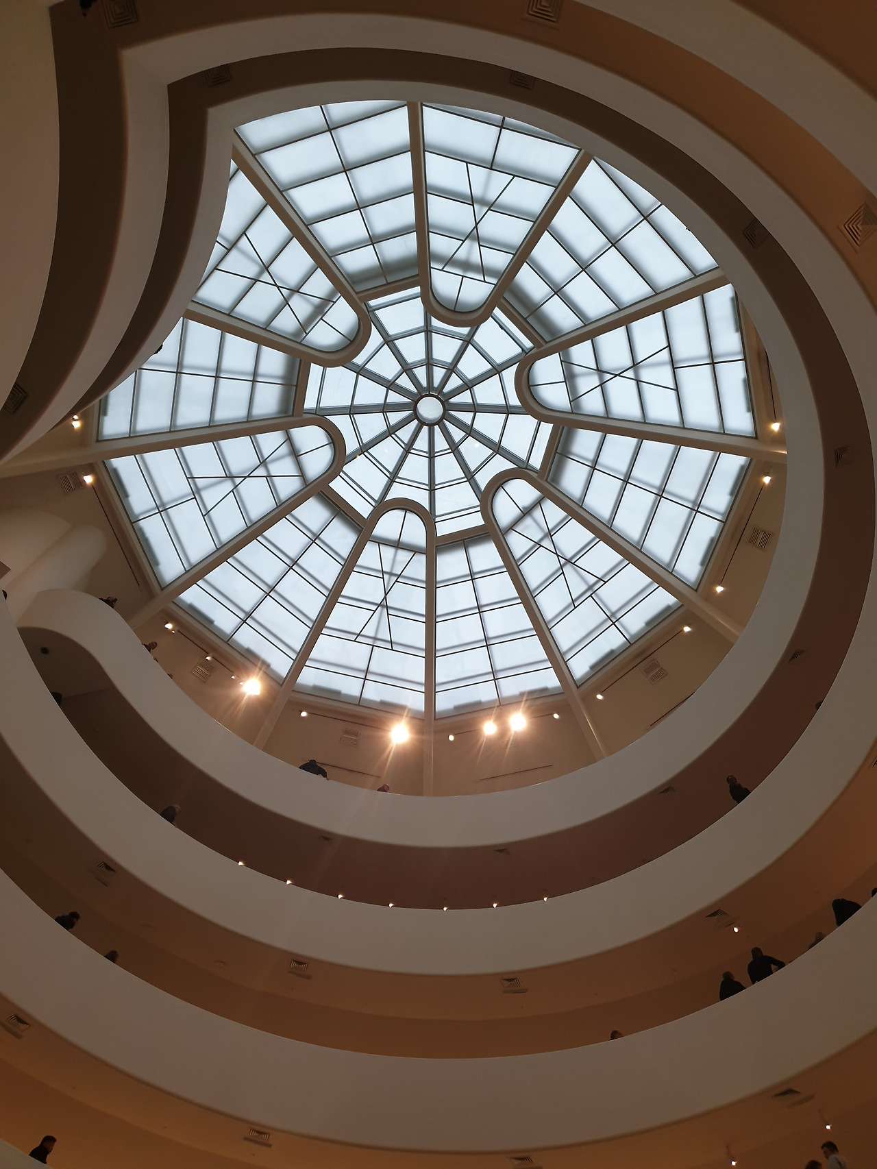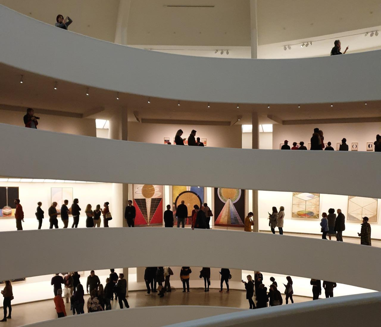 지하철을 타고 86th St. 역에서 내렸다. 돈 냄새가 자욱한 어퍼이스트사이드의 골목 골목을 지나 두루마리 휴지 모양의(!?) 독특한 자태를 자랑하는 구겐하임 미술관에 도착. Hilma af Klint라는 작가의 전시가 한창 진행 중이었다. 처음 듣는 이름이었기에, 작품 감상에 열의를 불태우며 영어로 된 오디오 가이드도 각자 하나씩 빌렸다. 이제 통역가로 활약.. 하기 전에 인터넷 검색부터 하는 센스를 발휘합시다. 구겐하임을 통째로 빌릴 수 있을 정도의 작가라면 참고할 수 있는 게시물이 하나쯤은 있겠지. 쉽게 가자고요. 쉽게.