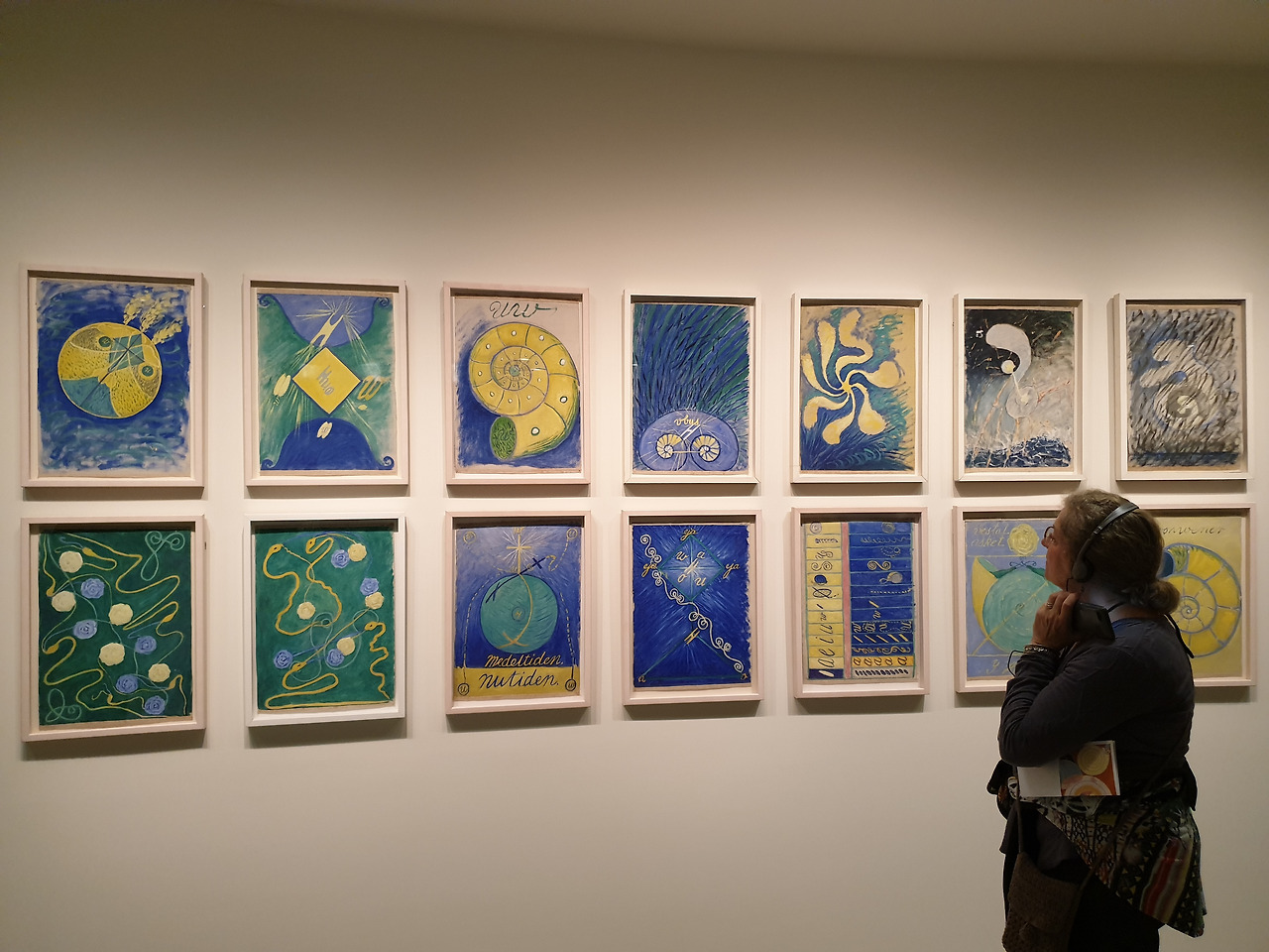 "오, 이 분 아주 대단하신 분이시네. 칸딘스키나 몬드리안보다도 추상 회화 작품을 먼저 그린 선구자인데, 눈에 보이지 않는 것을 주로 그렸대요. 눈에 보이지 않는걸 어떻게 그렸을까?! 자그마치 1944년, 81세의 나이로 사망하기 전에 사후 20년동안 자신의 작품을 외부에 공개하지 말라고 했다네요. 지금의 대중들은 자신의 작품을 이해할 수 없을 거라면서요. 결국 1986년에 LA에서 처음 전시회를 했고, 그 때부터 세상에 알려지기 시작했대요."