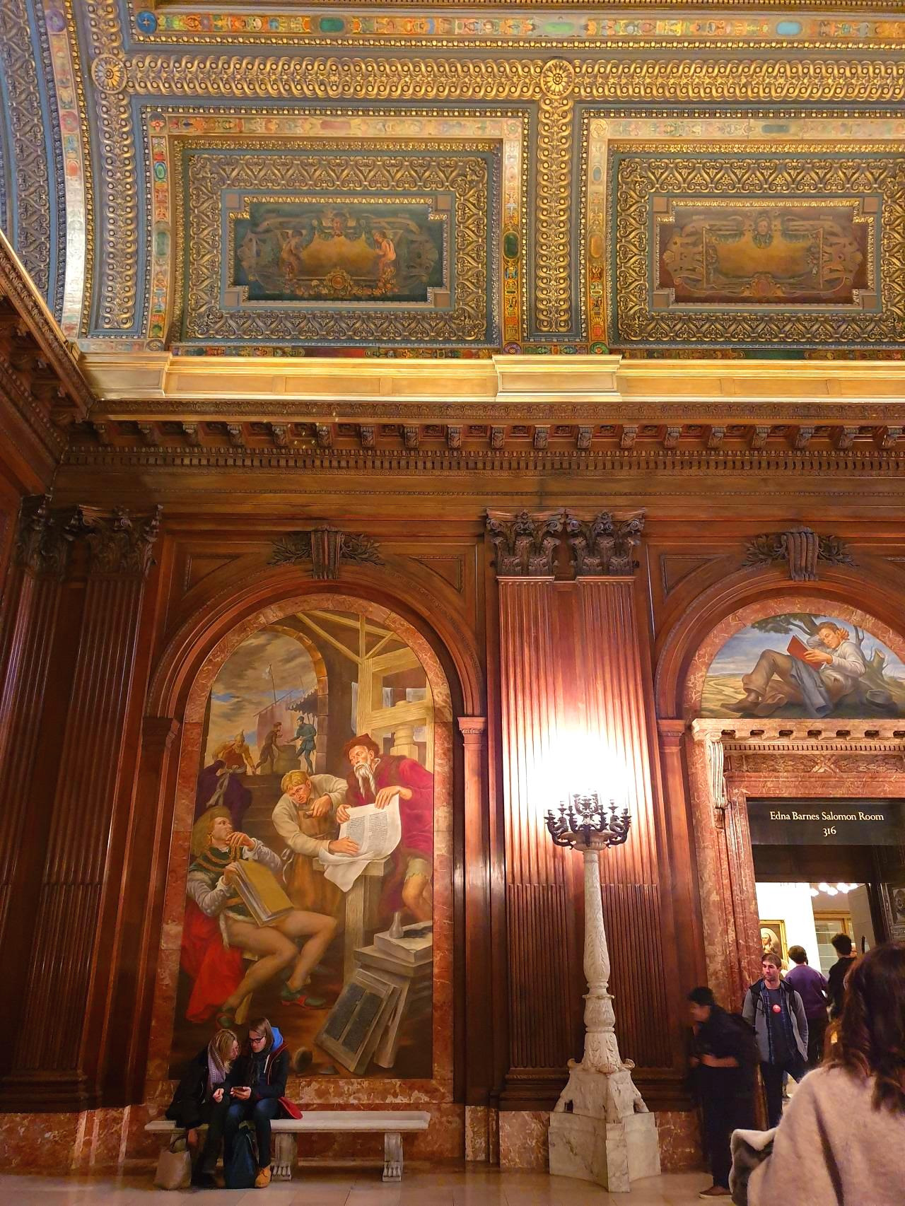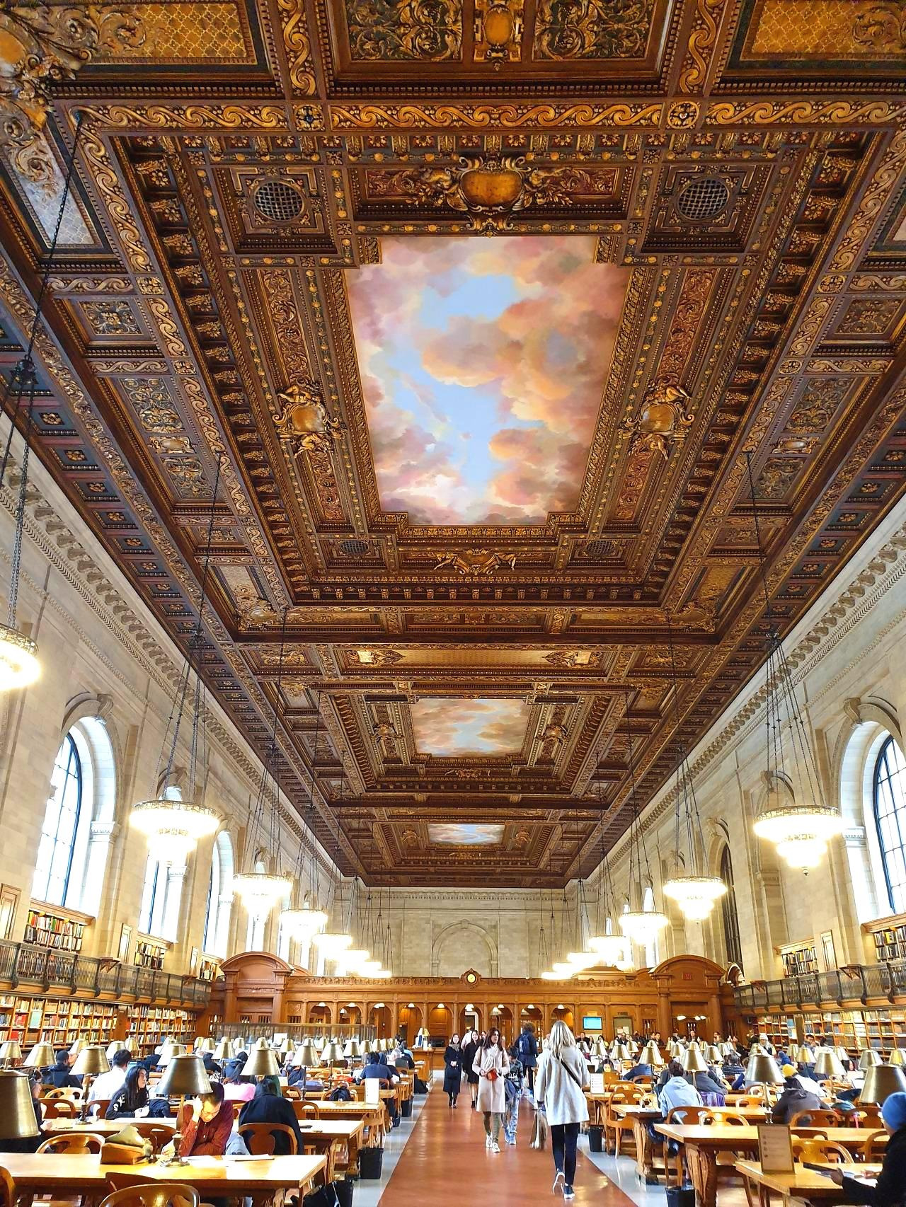 도서관 안쪽까지 들어와 보니 기가 질리도록 화려한 인테리어와 아름다운 조명, 명화들로 도서관을 장식했다는 점에 놀라지 않을 수 없었다. 이 훌륭한 곳을 무료로 개방하는 것도. 그래서 틈만 나면 노트북을 들고 와서 앉아있는 사람들이 그렇게나 많았구나. 난 아이맥을 썼기에, 그 큰 컴퓨터를 들고 여기까지 올 수 없었지. 아니, 여기에 와서 과제를 해야겠다는 생각조차 하지 못할 만큼 마음의 여유가 없었다. 하루하루를 살아내기 바빠서. 가끔은 이런 곳에서 책도 보고, 에세이도 쓰면서 뉴요커의 기분을 만끽해 볼걸. 여행을 하면 할수록 후회스러운 것들 투성이다. 한국에서의 일상도 나중에 돌이켜 보면 아쉬우려나.