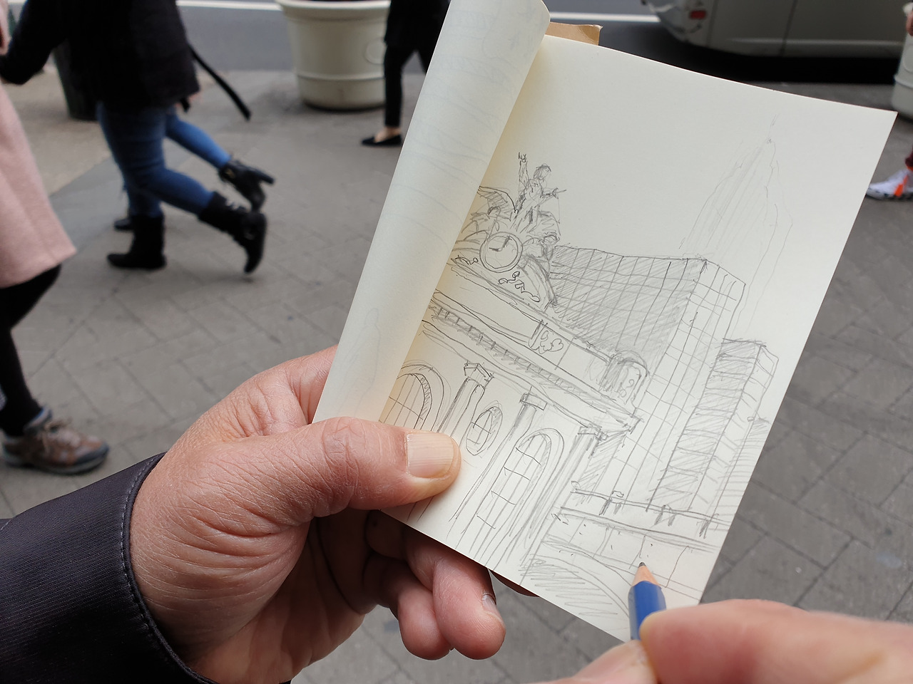 날씨가 쌀쌀해서 손이 조금 시렸음에도 불구하고, 뉴욕 스케치 트립 'SKETCH AND THE CITY'는 성공적이었다. 오전 11시 30분, 그랜드 센트럴 터미널에서 오늘 함께 그림을 그리게 될 사람들과 함께 Ben Ponte 선생님을 만났다. 짙은 회색의 빵모자가 잘 어울리는 밝은 미소의 선생님은 호주에서 온 아티스트였다. 지금은 Green Visa로 체류 중이지만 언젠가는 아티스트로 인정받아서 미국 시민권을 받는 것이 목표라고 했다.